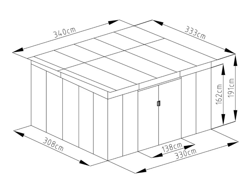 A kerti tároló kétszárnyas ajtóval van ellátva. A bejárat így igazán kényelmes akkor is, ha nagyobb tárgyat visz be vagy ki.