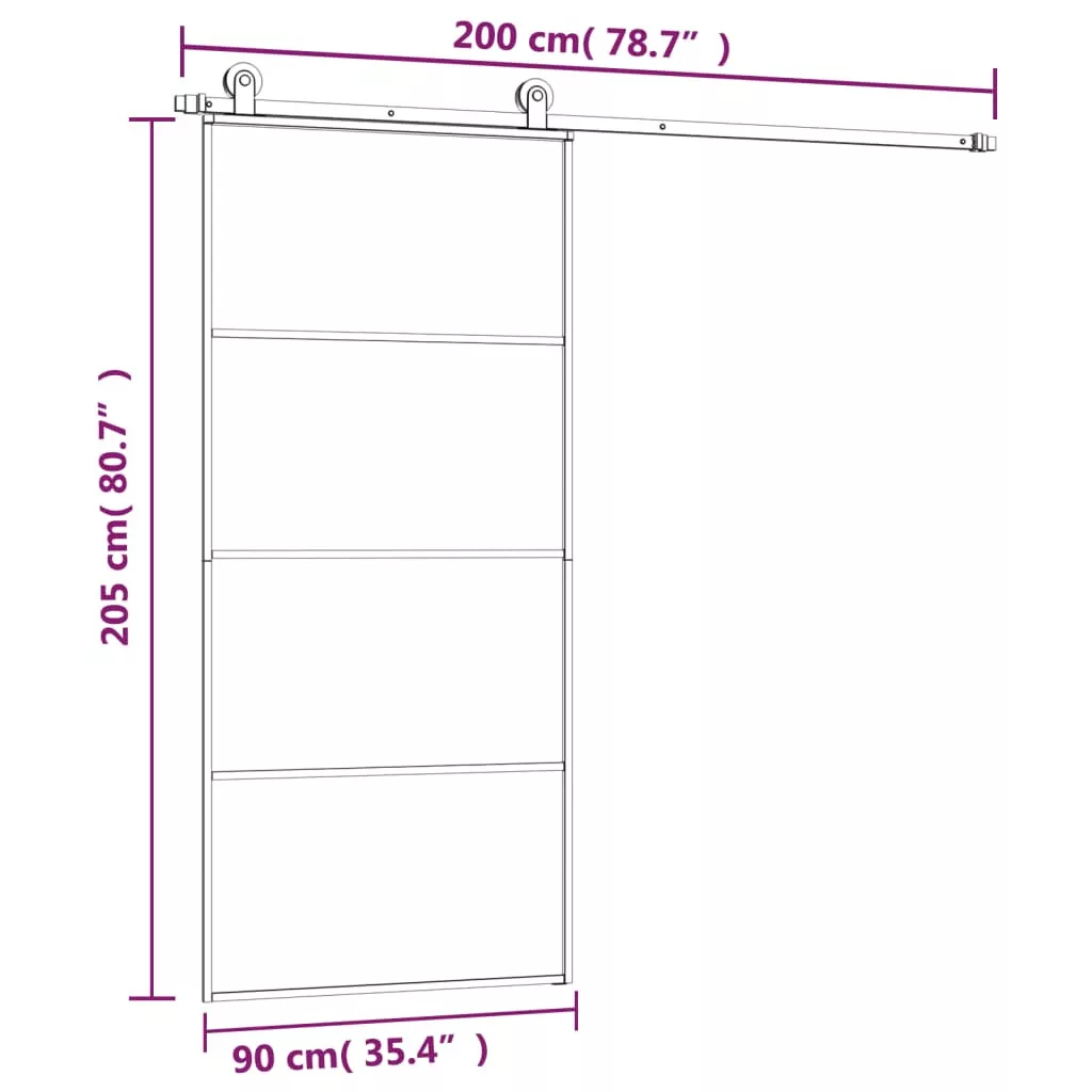 ESG üveg és alumínium tolóajtó fémszerelvény-szettel 90x205 cm