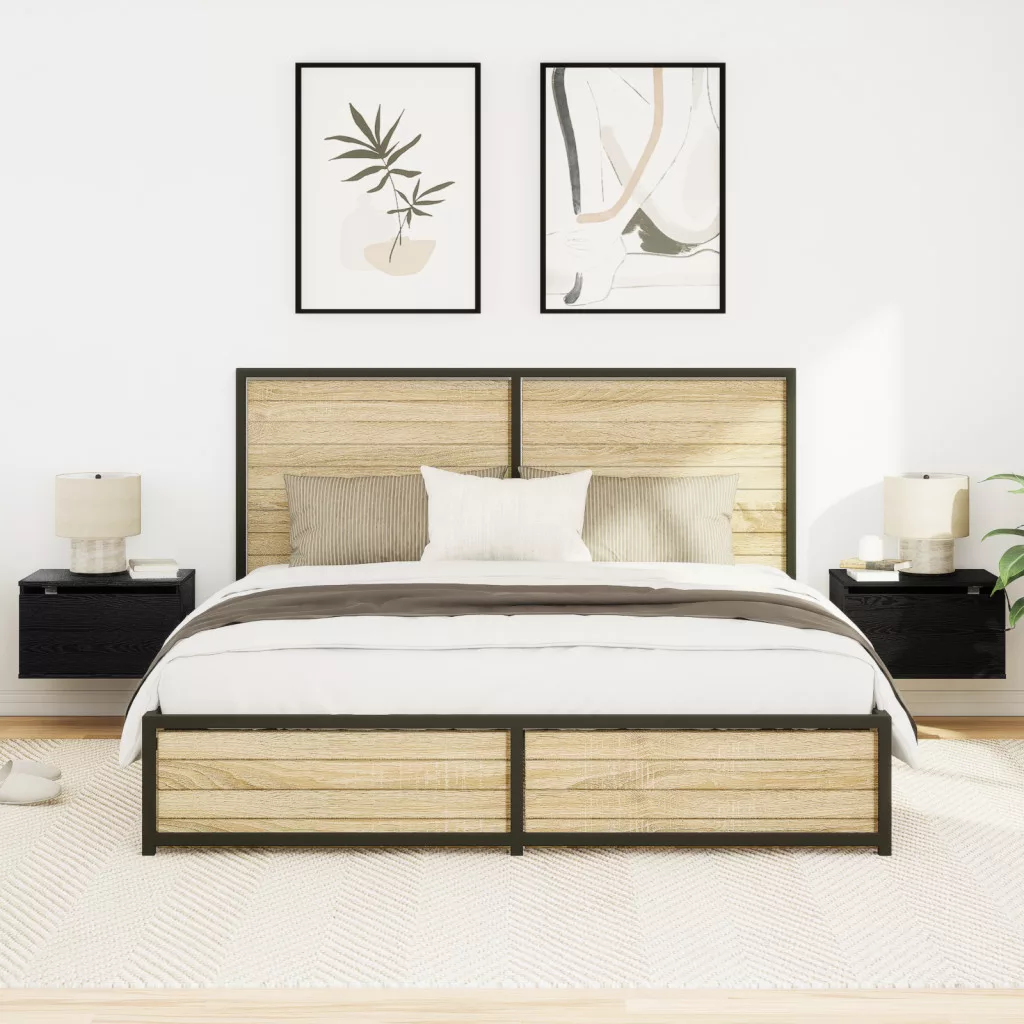 Éjjeli Asztalok LED Fénnyel 2 db Falra Szerelhető Fekete Tölgy
