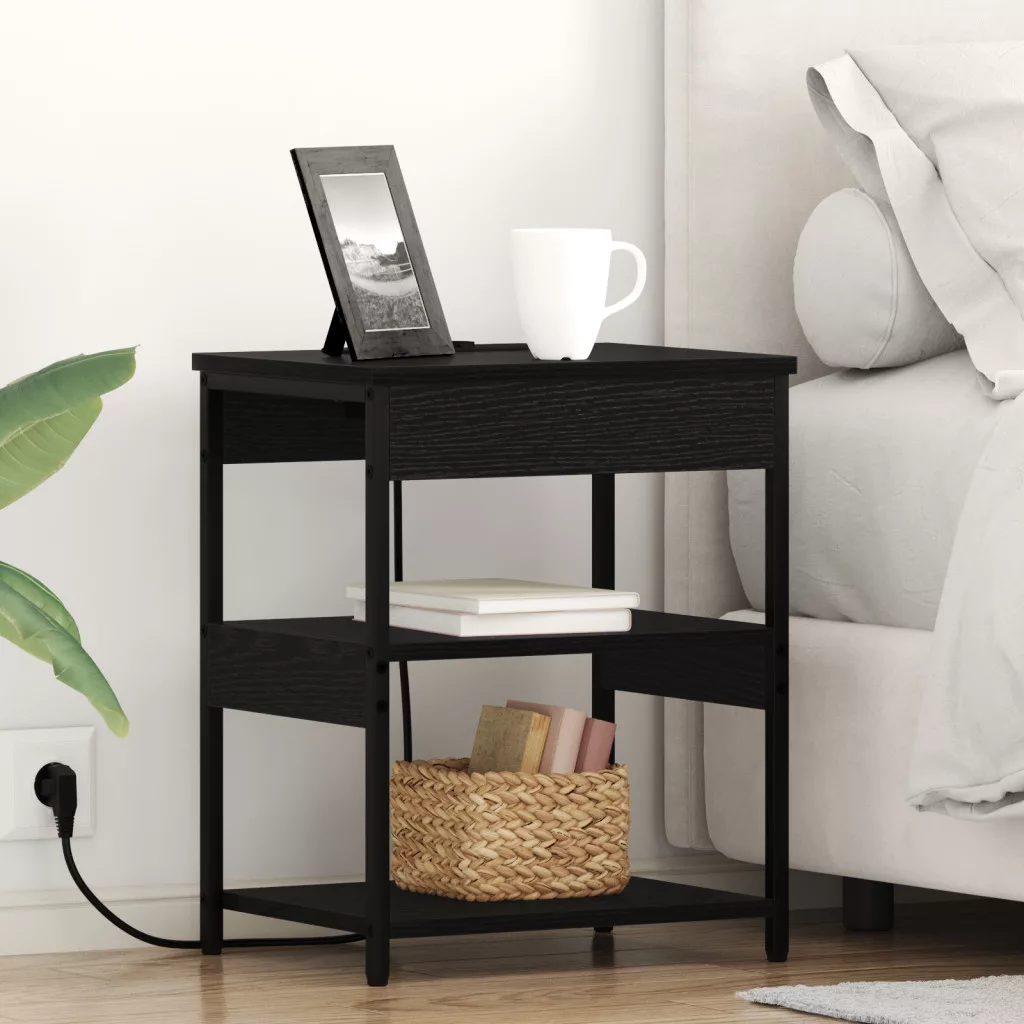 Ez az éjjeli szekrény elegánsan ötvözi a funkciót és a stílust, letisztult és modern dizájnt kínál, ami tökéletes a kortárs hálószobák és nappalik számára. Simább textúrájával, átlátszatlan felületével és téglalap alakjával szinte zökkenőmentesen illeszkedik bármilyen lakberendezéshez. Robusztus formája megbízhatóságot biztosít, miközben bőséges tárolóhelyet kínál a személyes tárgyak, lámpák és ébresztőórák számára, kényelmet és kifinomultságot kölcsönözve a lakóhelyednek. Anyagok: Az éjjeli szekrény szerelt fából készült, sima, tapinthatóan vonzó textúrával. Ez az anyagválasztás összhangban van a kortárs dizájn elveivel, robustusságot és elegáns esztétikát kínálva. A szekrény MDF szerkezete tartós stabilitást garantál, ideális a mindennapi használathoz, minden stílus kompromisszum nélkül. Beépített alkatrészek: Az MDF-ből készült polcokkal ez a szekrény elemzi a praktikát és az egyszerű szervezési megoldásokat. A matt keretf finish eleganciát ad, ami visszafogott, de finom megjelenést kölcsönöz. Két négyzet alakú MDF láb biztosítja a szekrény stabil alapját, biztosítva, hogy a szekrény mindig álljon és stabilan helyezkedjen el a különböző padló típusokon. Jellemzők / Funkció / Dizájn: A szekrény kifinomult sziluettje mellett funkcionális csatlakozókat integrál, létrehozva egy praktikus töltőállomást, ami megkönnyíti az eszközök energiával való ellátását, rendezettséggel. A funkciók zökkenőmentes integrálása támogatja a kortárs életstílusokat, így a szekrény elengedhetetlen utility, ami beleillik bármely modern lakóelrendezésbe. Ajánlott felhasználások: Tökéletes az ágy mellett vagy mint kiegészítő darab a nappaliban, ez a szekrény könnyedén alkalmazkodik a különböző terekhez. Minimalista dizájnja fokozza a környezet bármely elemét, miközben a bőséges tárolóhely és az aljzatok sokoldalúságot nyújtanak, kielégítve a különböző felhasználók igényeit anélkül, hogy feláldoznák az esztétikai értéket. Ápolás és karbantartás: A szekrény állapotának megőrzése minimális erőfeszítést igényel. Csak töröld le a felületeket egy száraz ronggyal a por és törmelék eltávolításához, így megőrizve a hosszú élettartamú elegáns megjelenést. Kerüld a durva vegyszerek használatát, így a szekrény felülete megmarad épen és vonzón az idő múlásával. FIGYELEM: A tűz- vagy áramütésveszély csökkentése érdekében olvassa el az összes utasítást a többszörös aljzat felszerelése vagy használata előtt. FIGYELMEZTETÉS: Ne használja az aljzatot 16 A feletti készülékek csatlakoztatására. Az áram veszélyes. A sérülés, a nem megfelelő felszerelés, használat vagy módosítás (egyes alkatrészek cseréje) a készülék károsodásához vezethet, ami áramütést és veszélyt jelent a felhasználó számára. Ha a külső rugalmas kábel vagy vezeték megsérül, azt kizárólag a gyártó, annak szervizképviselője vagy hasonlóan képzett személy cserélheti ki a veszély elkerülése érdekében. Az USB-csatlakozó csak IT-eszközökhöz használható. Ne csatlakoztassa egymás után. Használat közben ne takarja le. Csak száraz környezetben használja. A megnövekedett hőterhelés miatt csak kinyújtott állapotban üzemeltesse. Telepítés és karbantartás közben kapcsolja ki az áramellátást.