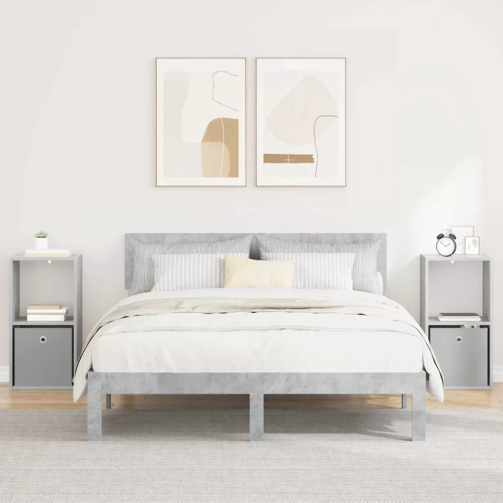 Éjjeli asztal 2 pcs Beton Szürke 35 x 32 x 68,5 cm Faanyag