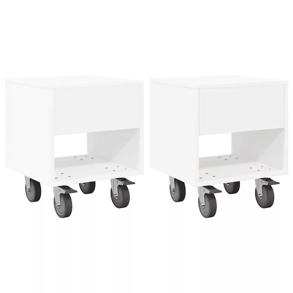 Éjjeli asztal 2 pcs Fehér 40,5 x 40 x 48 cm Faanyag