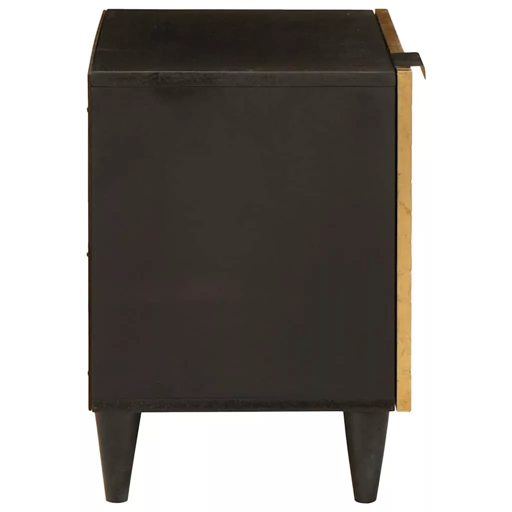 Ez a Fa Éjjeliszekrény tökéletes kiegészítője bármilyen hálószobának, mert összekombinálja a stílust és a praktikummal. Modern, minimalista díszítéssel és letisztult fekete-arany színvilággal találóan passzol a különböző dekorációkhoz. Kényelmesen tervezve, ez az asztal dekoratív elemként és hasznos tárolóként is helytáll. A mérete és formája ideális éjszakai társ, egyszerű hozzáférést biztosít a lámpákhoz, ébresztőórákhoz és egyéb apróságokhoz. Tömör mangófából készült: Kiváló minőségű mangófából készült, így ez az éjjeliszekrény jól bírja a napi használatot. A fa természetes mintázatai mindegyik asztalnak egyedi bájt adnak. Jó tárolóhely: Tágas rekesszel és sík felülettel rendelkezik, így bőven van helye a szükséges dolgoknak. Akár egy lámpa, akár az aktuális olvasnivalód, minden szépen elfér. Modern dizájn elemek: A letisztult téglalap alak és a tiszta vonalak modern eleganciát tükröznek, jól beleolvadva a mai belső terekbe, ötvözve a stílust és a praktikát. Elegáns arany kiegészítők: A csillogó arany fogantyúk és keret kiemelkednek a feketéből, igazi szemgyönyörködtető darabbá téve ezt az asztalt anélkül, hogy elvonja a figyelmet a szoba egyéb dekorációitól. Egyszerű karbantartás: Ennek az éjjeliszekrénynek a karbantartása szuperegyszerű. Csak egy gyors törlés nedves ruhával, és máris friss marad. Intelligens tervezése miatt a por távol tartása is könnyen megoldható, így kevesebbet kell takarítanod.
