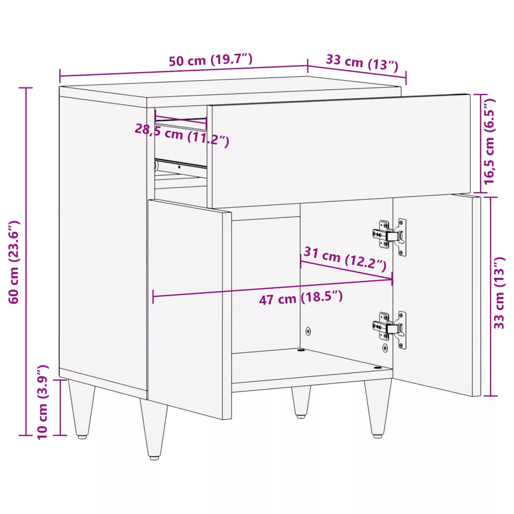 Éjjeli asztal 50x33x60 cm Tömör mangófából