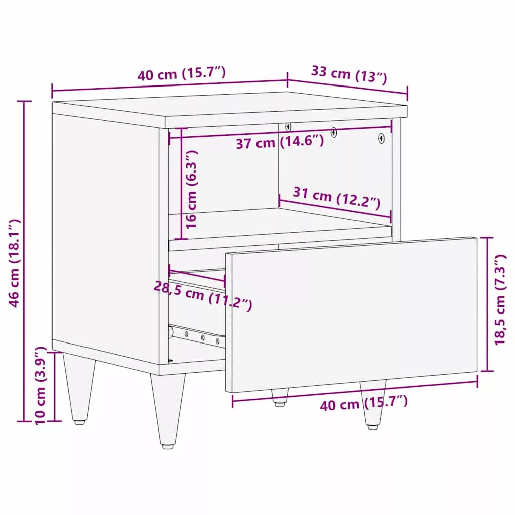 Éjjeli asztal Fekete és Arany 40 x 33 x 46 cm tömör mangófa