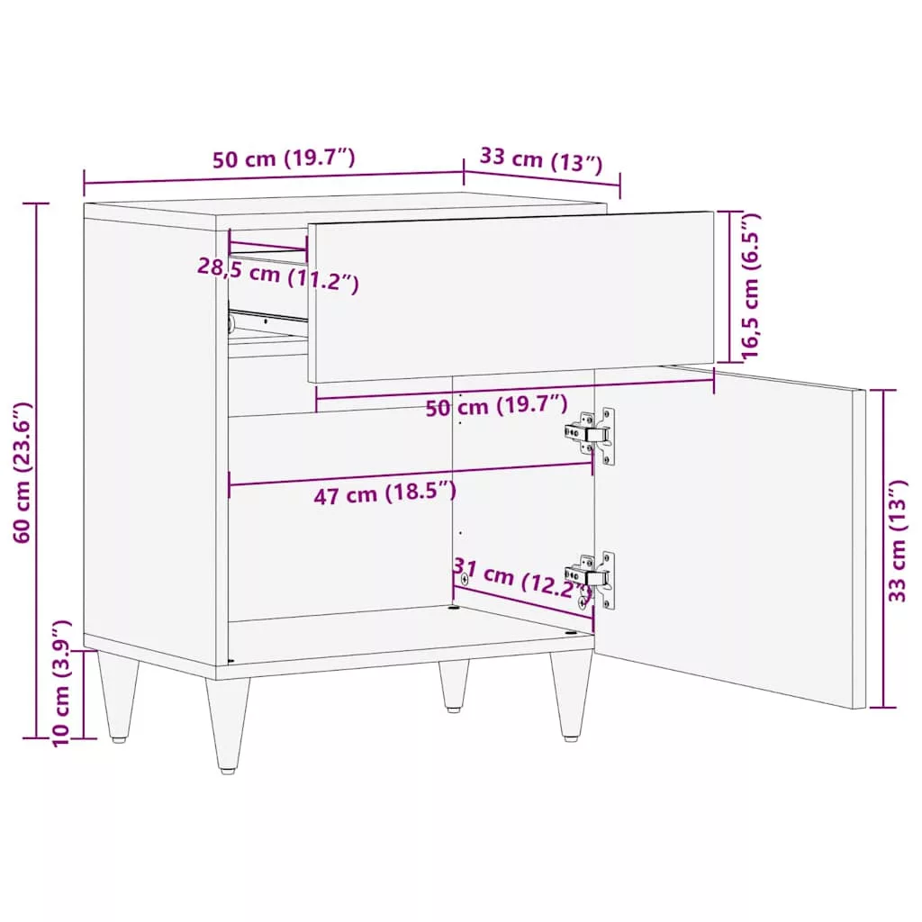 Ez a trendi és csinos éjjeli asztal ötvözi a stílust és a praktikusságot, így szuper kiegészítője bármilyen hálószobának. Modern hangulatával, letisztult vonalaival és minimalista stílusával egyaránt kortárs és klasszikus érzést ad. Az elegáns fekete és arany színkombináció rengeteg eleganciát áraszt, tökéletesen passzol a különböző hálószoba stílusokhoz. Kiválóan alkalmas a kacatok tárolására, egy kis klassz érzéssel párosítva a praktikum mellé. Tömör Mangófából Készült: Minőségi tömör mangófából készült, ez az éjjeli asztal masszív és tartós. A természetes faerezet nemcsak erőssé teszi, hanem szép sima felületet is ad. Praktikus Tárolás: A fényes arany színű tágas fiókban sok hely van az olyan alapvető dolgoknak, mint könyvek vagy szemüvegek. A fiók simán nyílik, így könnyen elérheted, amire szükséged van. Jól Néz Ki: Az asztal merész fekete és arany színkombinációja kiemeli bármely hálószobában. Az elegáns színek jól illenek a modern minimalizmustól a különféle eklektikus formatervezésekig. Masszív Lábak: Tömör mangófából készült lábakkal támogatva nagyon stabil és erős. A lábak fekete bevonata hozzájárul a modern megjelenéshez, és bizalmat ad a tartósságában. Egyszerű Ápolás: A gyönyörű darab tisztán tartása gyerekjáték; csak egy nedves ruhával töröld át, hogy mindig friss maradjon. Ez a gyors takarítási rutin segít megőrizni a jó kinézetet az idő múlásával.