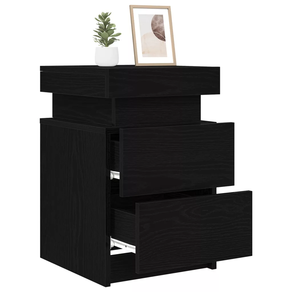 Éjjeli asztal LED világítással Fekete tölgy 35x39x55 cm