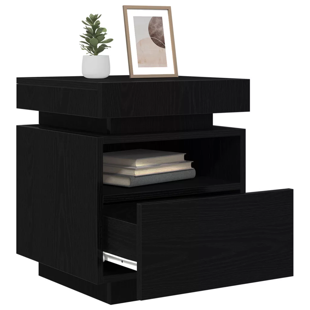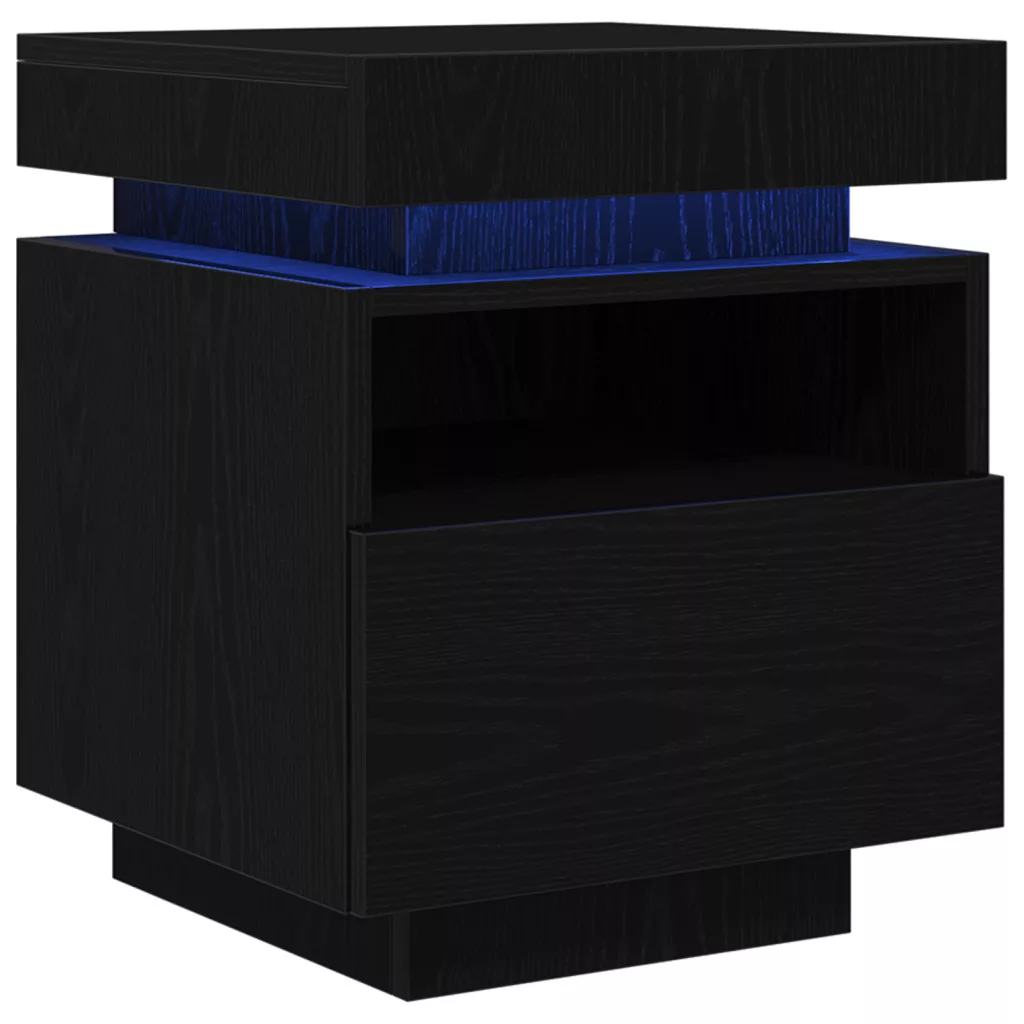 Éjjeli asztal LED világítással Fekete tölgy 40x39x48,5 cm