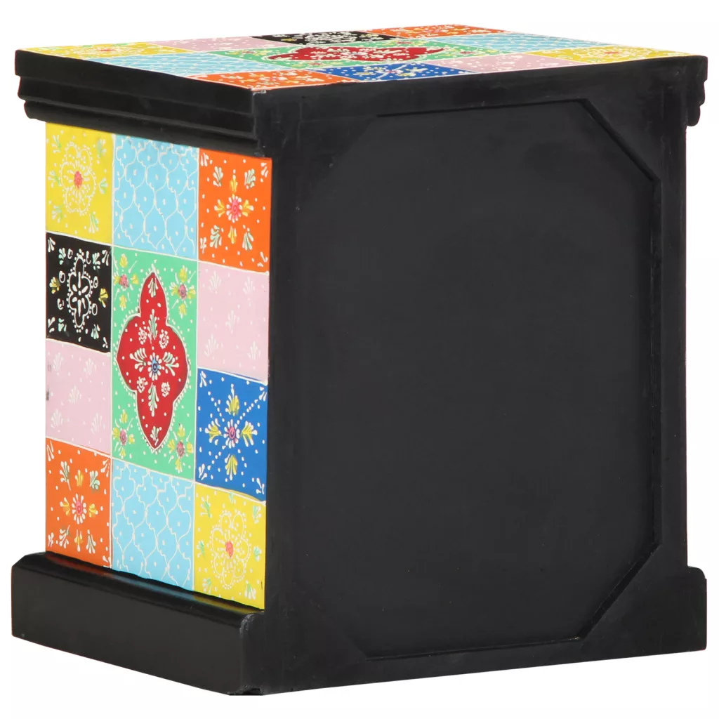 Ez a többszínű patchwork éjjeli asztal egy szuper kiegészítő, ami feldobja a hálószobádat élénk dizájnjával és vonzó varázsával. Akár egy helyet keresel az éjjeli lámpádnak, akár szeretnéd rendezetten tartani a dolgaidat, ez az asztal mindent megold, miközben jól mutat. Bohém Stílus: Öleld át a bohém dekoráció élénk szellemét ezzel a vidám patchwork dizájnnal, ami figyelemfelkeltő és jó beszélgetést indít a hálószobában. Természetes Fa Felépítés: Kiváló minőségű, természetes fából készült, ami megjelenés és tartósság tökéletes kombinációját nyújtja. A festett felület védelmet ad a fájának, miközben stílusos is. Kompakt Méret: Mindössze 20 cm x 15 cm és 2 cm magas, ez a méret ideális a kényelmes helyekhez, anélkül, hogy elvenne a szobádból. Funkcionális Tárolás: Két tágas fiókkal és hagyományos gombfogantyúkkal elrejtheted a dolgokat, így a felszínt rendezett és tiszta tarthatod. Az egyszerű húzómechanizmus segít könnyedén hozzáférni a dolgaidhoz. Dekoratív Betétek: Az asztal díszes betétei stílust adnak, növelve az asztal vonzerejét és feldobva a belső teret. Tökéletes a művészi báj hozzáadásához.