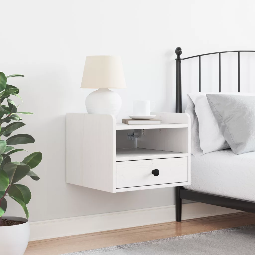 Éjjeli asztal fiókkal Fehér 38 x 36 x 29.5 cm Tömör fenyőfa