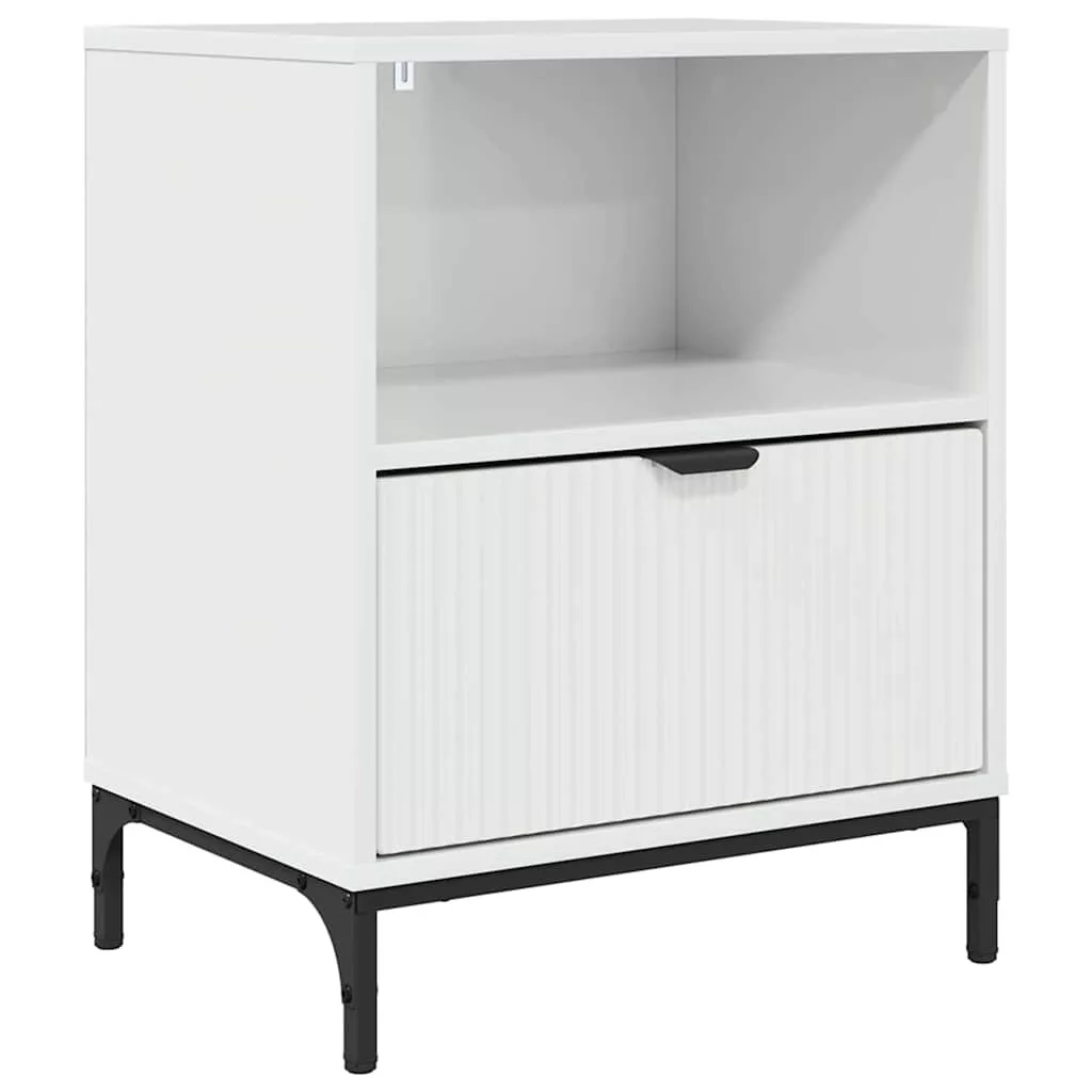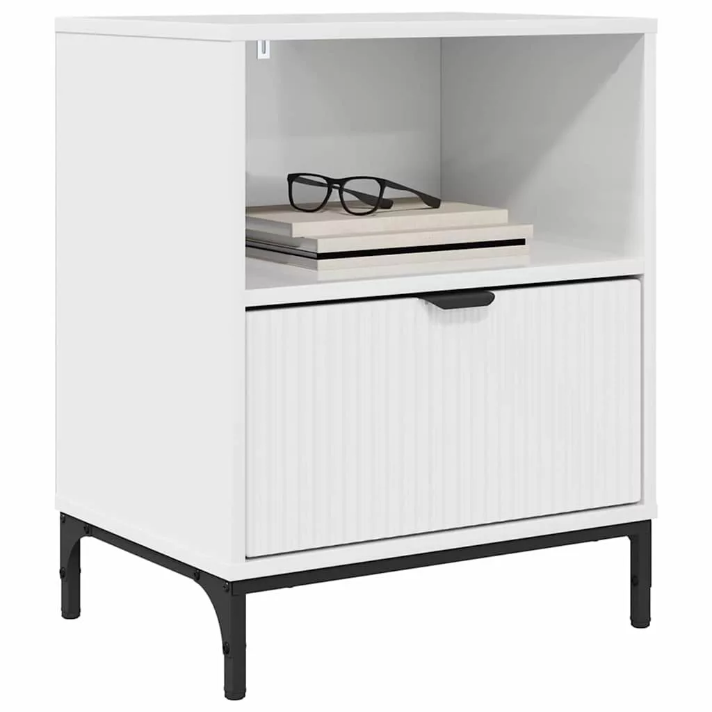 Éjjeli asztal fiókkal Magasfényű fehér 49 x 36 x 61 cm Faanyag