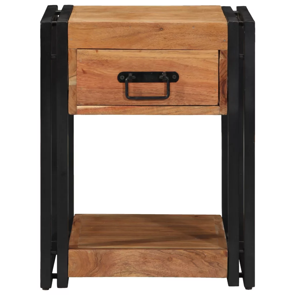 Ez az éjjeli asztal nagyszerű keveréke a természetes szépségnek és a modern dizájnnak, így kihagyhatatlan bármely hálószobához. Lenyerű akácfa teteje nemcsak jól néz ki, hanem tökéletes hely a lámpáknak, ébresztőóráknak vagy személyes holmiknak, így stílust és hasznosságot ad. Természetes fa esztétika: A tömör akácfa gazdag árnyalatai és jellegzetes erezete egyedi vizuális vonzerőt biztosít a térben. A természetes felület széles dekorációs stílusokkal harmonizálva ízléses érintést ad a szobádnak. Tartós fém keret: A masszív fekete vas keretre építve ez az éjjeli asztal kiemelkedő tartósságot és stabilitást ígér. Szilárd felépítése akár 75 kg súlyt is elbír, biztosítva, hogy nap mint nap használható maradjon, miközben megtartja stílusos megjelenését. Bőséges tárolóhely: A praktikus fióknak és egy extra polcnak köszönhetően ez az éjjeli asztal rengeteg helyet biztosít az éjszakai alapfelszerelések rendezett tárolásához. A fiók megkönnyíti a szükséges dolgok gyors elérhetőségét, így a területed rendezett marad, akár nagy, akár kis szobáról van szó. Kompakt méretek: A 40 x 30 x 50 cm-es méreteivel ez az éjjeli asztal szépen elfér a szűk helyeken, miközben alapvető tárolást biztosít. Mérete lehetővé teszi, hogy az ágyak vagy kanapék mellett elhelyezd anélkül, hogy zsúfolt lenne a tér, így nagyszerű választás a lakásokhoz vagy a szűk hálószobákhoz. Modern sokoldalúság: Akár ágy melletti asztalként, akár szabadon álló darabként a lakóteredben, elegáns dizájnja miatt számos környezetbe illik, így sokoldalú választás bármely otthon számára.
