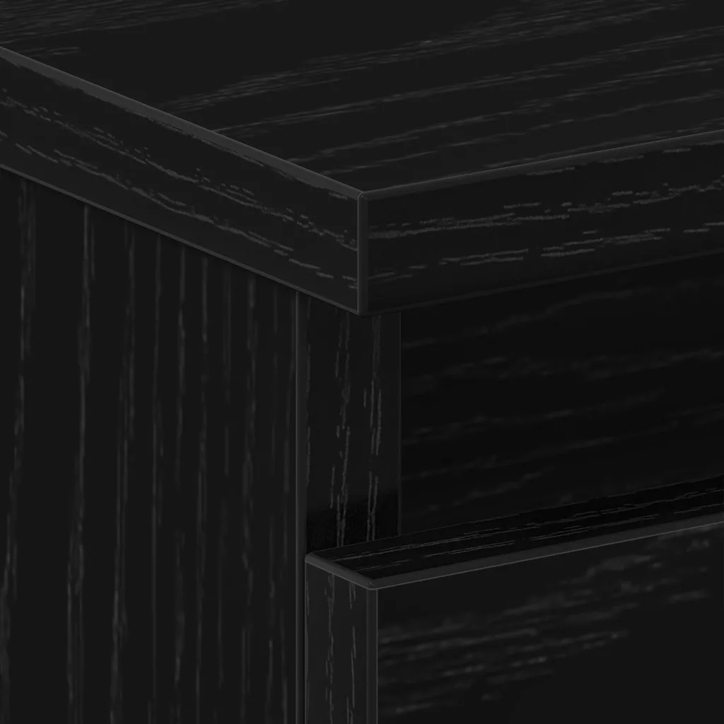 Ez a két éjjeli asztal stílusos módja a hálószobád tárolásának rendszerezésére, miközben jól mutatnak. Kiváló minőségű MDF-ből készültek, letisztult fekete tölgy színben, és mindkét asztal modern bájt kölcsönöz a térnek, miközben megbízható helyet ad a lámpáknak, könyveknek és személyes cuccoknak. A trendi dizájn tiszta vonalait és modern fekete tölgy befejezését dicsérhetjük, ami jól passzol különböző stílusokhoz. Bőséges tárolási lehetőség hat tágas fiókkal, amik rendezetten tartják az éjszakai szükségleteid, könnyen elérhető helyen. A szívós MDF-ből készült, így ezek az asztalok mindennapi használatra alkalmasak, hosszú élettartamot és megbízhatóságot kínálnak. Kiválóan használhatóak szűk terekben, éjjeli asztalként vagy kiegészítő asztalként, rengeteg lehetőséget adva bármely szobának. Az összeszerelés egyszerű, egy ember és néhány szerszám segítségével pillanatok alatt kész vagy velük.