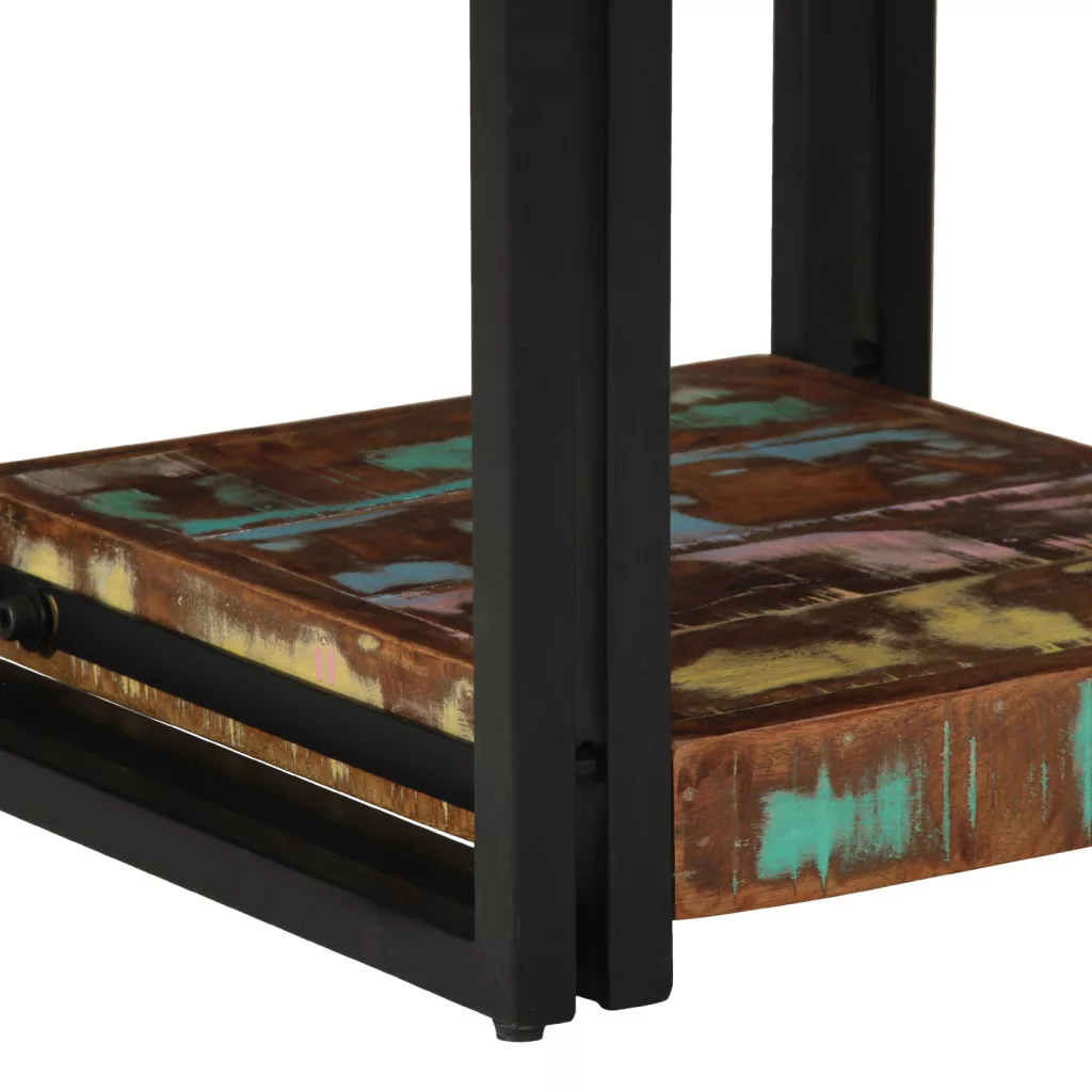 Ez az éjjeli szekrény ötvözi a rusztikus bájt és a modern stílust - elengedhetetlen darab bármely hálószobához vagy nappalihoz. Élénk, többszínű újrahasznosított fa felülete nem csak karaktert ad, hanem praktikus megoldást is jelent a lámpák és könyvek tárolására. Többszínű dizájn: Az újrahasznosított fa gazdag textúrája és élénk árnyalatai egyedi vizuális érdekességet hoznak a térbe. A többszínű felület jól illik a különböző stílusokhoz, a rusztikustól a modernig, fokozva a dekorációt. Robusztus fém keret: Erős vas kerettel készült, ez az éjjeli szekrény tartósságot és stabilitást biztosít. 75 kg-ig terhelhető, így jól bírja a mindennapi használatot. Bőséges tárolóhely: Az ügyesen megtervezett fiók és egy extra polc bőséges helyet kínál az alapvető éjjeli cuccoknak. A fiók könnyen elérhető, így rendben tartja a teret, tökéletes kicsi és nagy szobákhoz egyaránt. Kompakt méretek: A 40 x 40 x 50 cm-es méretével ez az éjjeli szekrény könnyen elfér szűk helyeken, miközben funkcionális tárolást kínál. Nagyszerű választás kis lakásokhoz vagy hálószobákhoz. Sokoldalú használat: Akár éjjeli asztalként, akár önálló darabként a nappaliban, modern dizájnjával illeszkedik a különböző beállításokhoz, flexibitásával ideális választás bármely otthon számára.