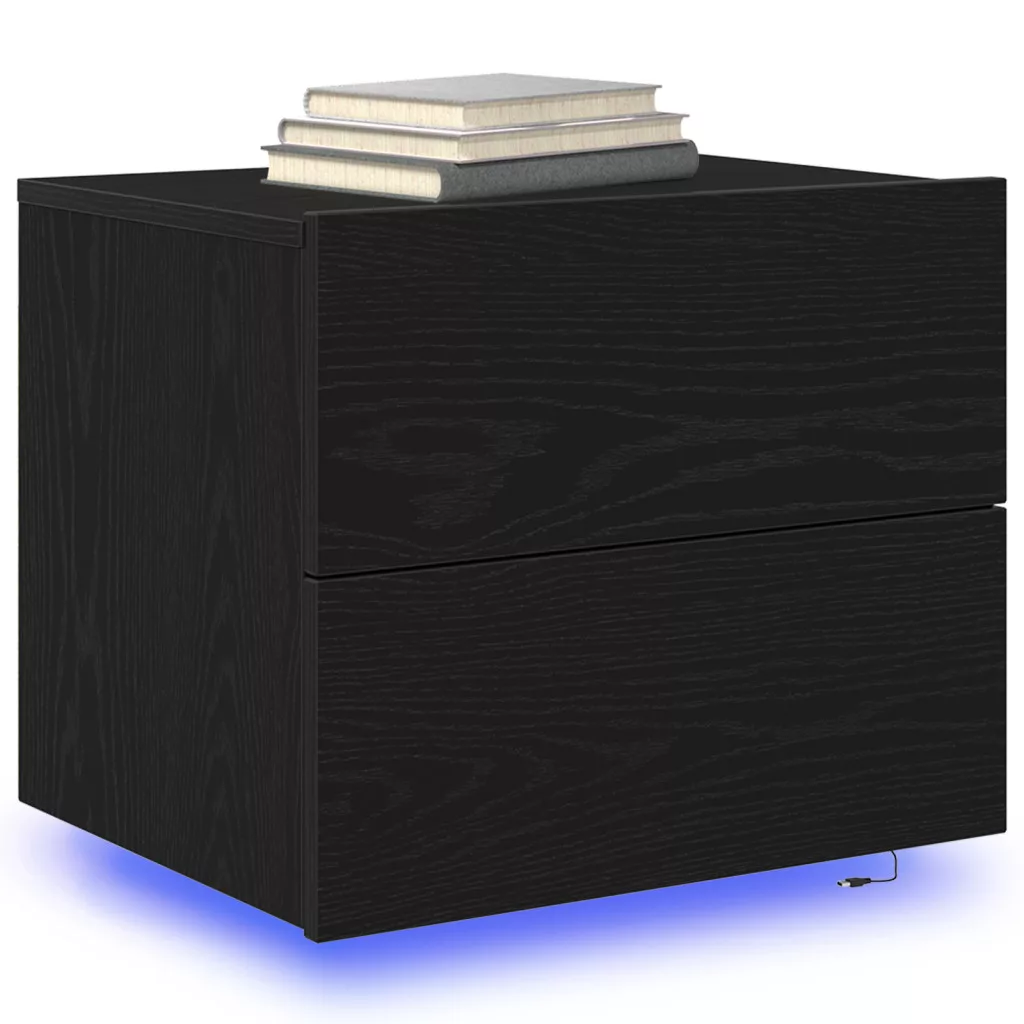 Éjjeli szekrény LED világítással, Fekete tölgy, 50x39x41 cm