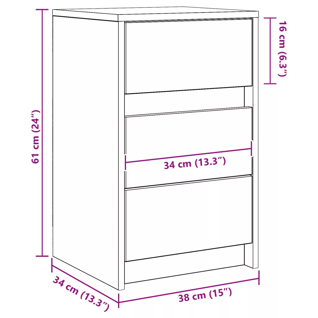 Frissítsd fel a hálószobádat a vidaXL Éjjeli szekrénnyel, ami régi fa befejezéssel ragyogó rusztikus hangulatot ad, és praktikus tárolást biztosít. Ez az éjjeli szekrény 3 tágas fiókkal rendelkezik, klasszikus fogantyúkkal, és jó helyet ajánl minden éjjeli cuccnak. Szilárd felépítése és sima felülete jól passzol bármilyen hálószobához. Ez a termék DC 5V-ról működik, de a tanúsított 5V-os USB-tápforrást nem tartalmazza. A magasabb feszültség túlmelegedést okozhat, ami a készülék károsodását, valamint a túlmelegedés és a tűz esetleges kockázatát okozhatja.