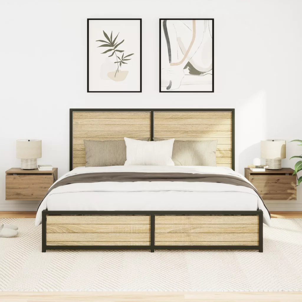 Éjjeli szekrények LED világítással 2 db Falra szerelhető Kézműves tölgy