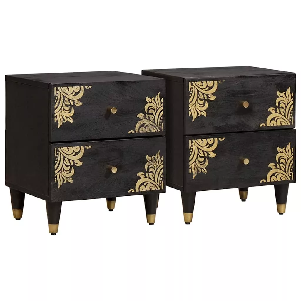 Éjjeliszekrény 2 pcs Fekete 40 x 33 x 46 cm Tömör Mangófát