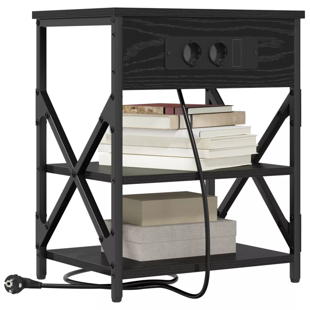 Éjjeliszekrény Töltőállomással polcokkal tárolóval Musta tammi Faanyag