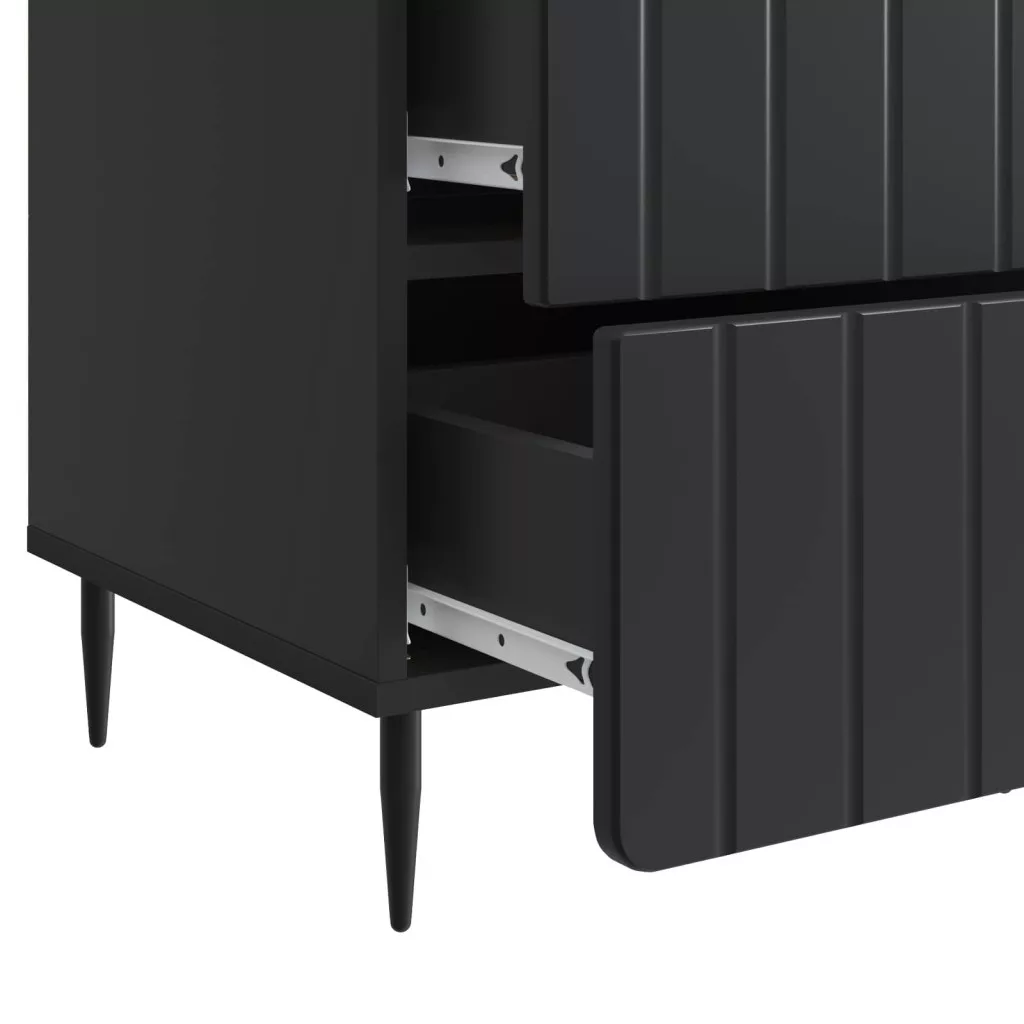 Ez a modern éjjeli szekrény ötvözi a letisztult dizájnt és a hasznosságot, így nélkülözhetetlen eleme minden kortárs lakótérnek. Téglalap alakja rengeteg helyet ad a napi szükségleteknek, míg a tiszta vonalai zökkenőmentes illeszkedést biztosítanak a hálószoba belső terébe. Mivel mérnöki fa konstrukcióval készült, tartós és megbízható a mindennapi használatra. Tartós mérnöki fa: Az éjjeli szekrény mérnöki fából készült, ami hosszú távú szilárdságot biztosít. Fényes megjelenése van, ellenáll a kopásnak, így megőrzi elegáns kinézetét minimális karbantartással. Simán kihúzható fiókok: A görgős fiókokkal felszerelt szekrény kényelmes és könnyed használatot nyújt. A fiókok simán működnek, lehetővé téve a személyes tárgyak könnyű elérését. Sokoldalú bőséges tároló: Ideális éjjeli asztalként vagy nappali tárolóként, tágas felső része és fiókjai ideálisak lámpák, ébresztőórák, könyvek tárolására. Kiválóan ötvözi a nyitott és rejtett tárolást. Modern egyszerűség: Tiszta vonalak és funkcionális elegancia jellemzi, így a minimalista dizájnja bármilyen modern térbe illik. A fekete lábak kontrasztot adnak, modern érzetet kölcsönözve. Egyszerű karbantartás: A szekrény állapotának megőrzéséhez elég egy nedves ruhával áttörölni. Ezek az egyszerű lépések segítenek megőrizni a friss és új kinézetet évekig, így a dekorációd állandó része maradhat.