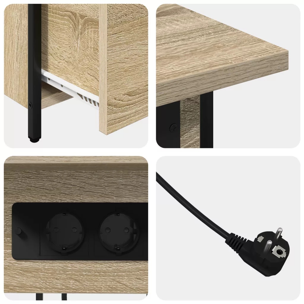 Ez az éjjeli asztal a modern egyszerűség és valódi hasznosság tökéletes keverékét hozza, így minden kortárs hálószobába remekül passzol. Tiszta vonalai és rendezetlen megjelenése segítenek egy laza hangulatot teremteni a térben. 60 cm széles, 30 cm mély és 61 cm magas, pont illik bármely ágy mellé, praktikus helyet biztosít az olyan fontos dolgoknak, mint az ébresztőórák, lámpák és személyes tárgyak. Kifejezetten azoknak készült, akik értékelik a szép dizájnt és a funkcionalitást, okos módot kínálva a rendszerezésre. Anyag: Tartós mérnöki fából készült, ez az éjjeli asztal kiállja az idő próbáját. A textúrált felület menő megjelenést ad neki, modern érintéssel. A mérnöki fa stabil, és nem deformálódik, szóval tökéletes a mindennapi használatra a hálószobádban. Tartozékok: Deszkából készült polcokkal, két simán futó fiókkal és egy masszív felső felülettel rendelkezik, bőven van hely az alapvető dolgaid számára. Erős acél lábakon áll, ami még nagyobb stabilitást ad neki. Minden egyes darab gondosan össze lett válogatva, hogy a praktikusságot a stílussal ötvözze, remekül illeszkedve bármilyen hálószobai elrendezésbe. Funkciók / Használat / Dizájn: A töltőállomásnak köszönhetően ez az asztal megkönnyíti az eszközök közel tartását alvás közben. Tágas és elegáns, segít abban, hogy a szobád rendezett maradjon. Méretei pontosan passzolnak bármilyen hálószobába, eleganciát adva anélkül, hogy zsúfolttá tenné a teret. Ajánlott használat: Nagyszerű éjjeli asztalként bármely hálószobában, ez az asztal vendégszobákban vagy stúdiókban is remekül alkalmazható. Klasszikus formája jól passzol különböző dekorációs stílusokhoz, felajánlva a hasznosság és a stílus mixét. Megbízható társ a személyes dolgaid kéznél tartásában. Tisztítás és karbantartás: Csak egy gyors törlés nedves ruhával elegendő, hogy felfrissítse a megjelenését. Ennek az éjjeli asztalnak a karbantartása egyszerű, segít megőrizni sima textúráját és felületét. Egy kis rendszeres takarítás garantálja, hogy évekig jól nézzen ki a hálószobádban.