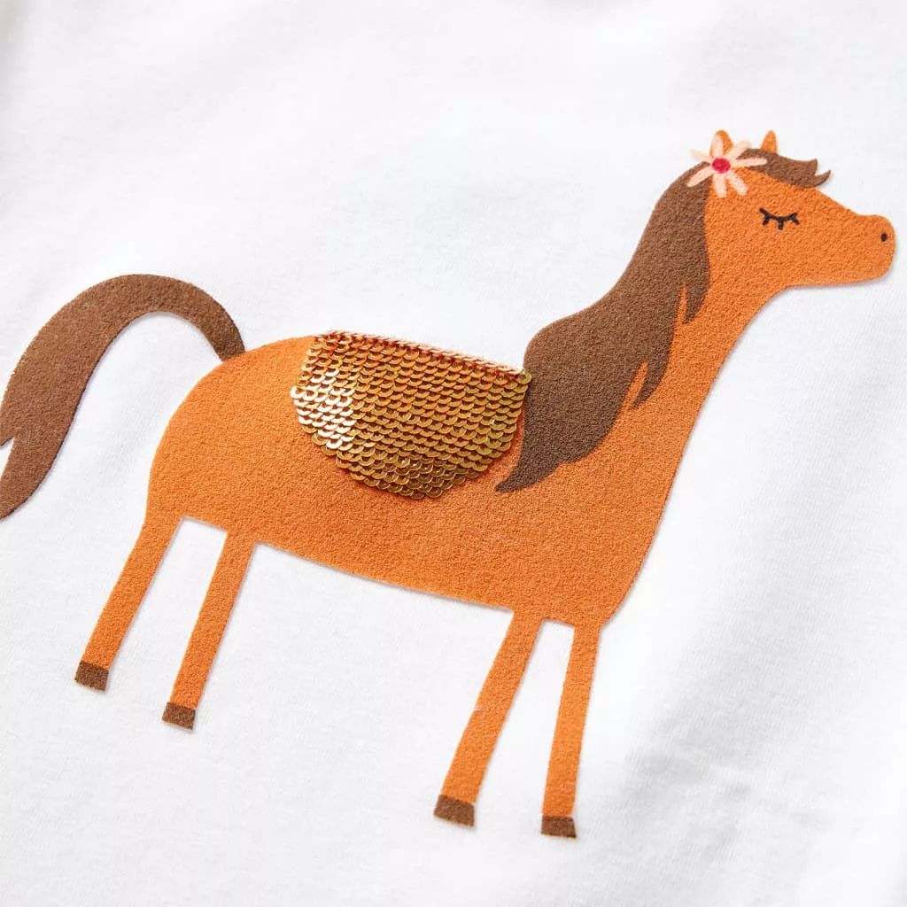Gyerekruha-kínálatunk a megfizethető, kiváló minőségű és tartós mindennapi viseletet képviseli 1,5 és 10 év közötti gyermekek számára. Kínálatunkban kabátok, pulóverek, ingek és még sok más található változatos stílusban, méretben és színben. A piac magas minőségi színvonalát követve kiváló minőségű anyagokat és fejlett gyártási technikákat alkalmazunk. Ez a hosszú ujjú gyerekpóló kerek nyakkivágású és egyenes szabású. Ezt az ekrü pólót egy aranyos póni díszíti. A hosszú ujjú gyerekpóló puha anyagból, 95% pamutból és 5% elasztánból készült az extra kényelem és légáteresztés érdekében. Fontos: A képen látható mérettáblázat az 1,5-10 éves gyermekek méretét ábrázolja, lefedi a magasságot, a mellkast, a derekat és a csípőt. Könnyedén megtalálhatja gyermeke számára a megfelelő méretet.