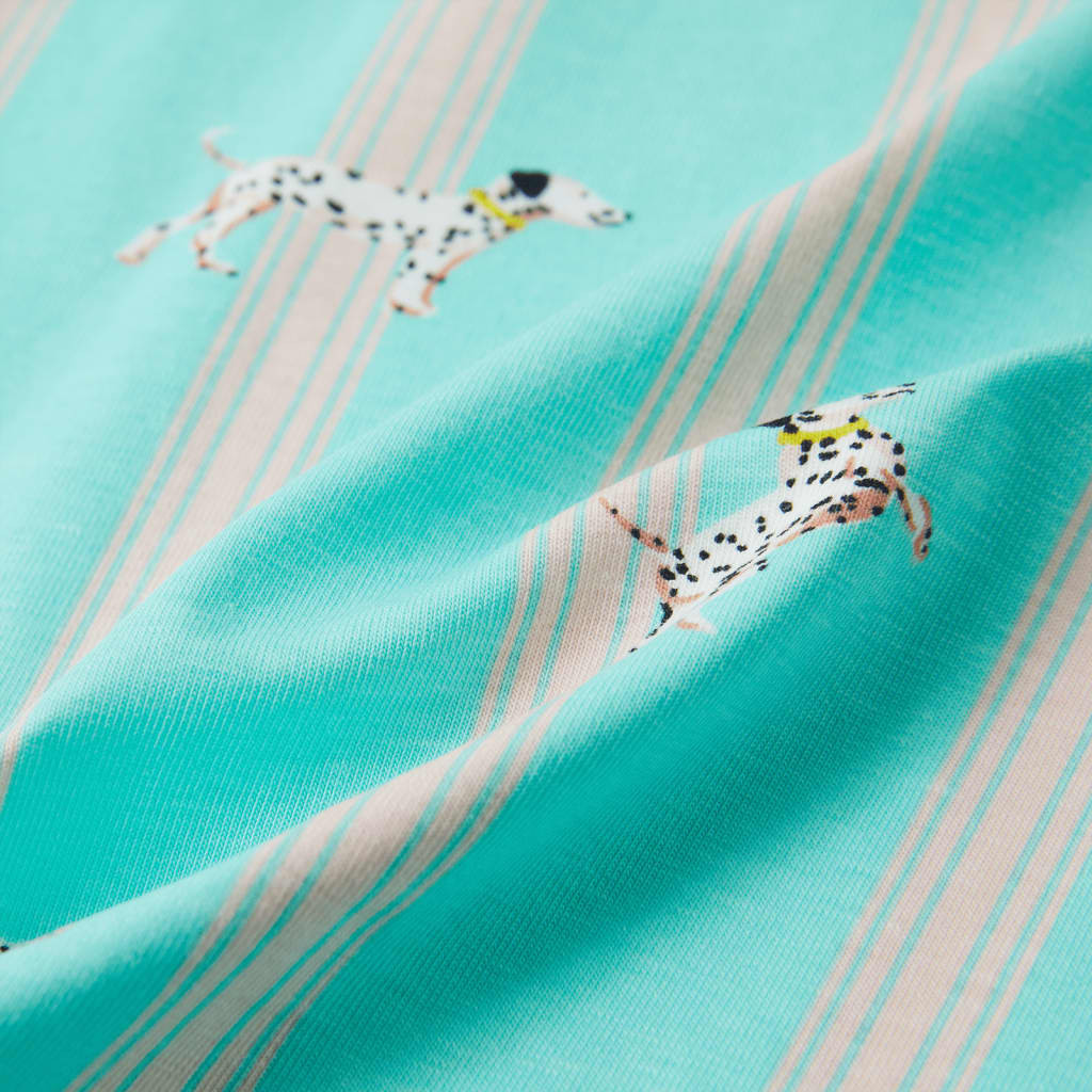 Gyerekruha-kínálatunk a megfizethető, kiváló minőségű és tartós mindennapi viseletet képviseli 1,5 és 10 év közötti gyermekek számára. Kínálatunkban kabátok, pulóverek, ingek és még sok más található változatos stílusban, méretben és színben. A piac magas minőségi színvonalát követve kiváló minőségű anyagokat és fejlett gyártási technikákat alkalmazunk. Ez a rövid ujjú gyerekpizsama kerek nyakkivágással és gumírozott derékpánttal rendelkezik, és egyenes szabású. Ennek a függőleges csíkos gyermekpizsamának a teljes felületét pöttyös kutyák borítják. A gyerekruha puha anyagból, 95% pamutból és 5% készült elasztánból az extra kényelem és légáteresztés érdekében. Fontos: A képen látható mérettáblázat az 1,5-10 éves gyermekek méretét ábrázolja, lefedi a magasságot, a mellkast, a derekat és a csípőt. Könnyedén megtalálhatja gyermeke számára a megfelelő méretet.