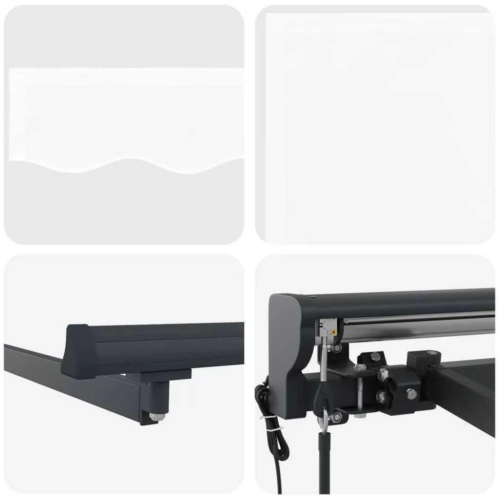Ez a behúzható napellenző praktikus árnyékot nyújt a kültéri helyiségeknek, mint kertek és teraszok. Könnyen kihúzható vagy behúzható, szóval simán állíthatod, mennyi napfényre vagy árnyékra van szükséged. Remek választás tevékenységekhez, mint a kerti étkezés, pihenés vagy vendégfogadás, hiszen kellemes környezetet teremt, védelmet adva a nap és az enyhe eső ellen. A napellenző tökéletes eszköz a kültéri helyek maximális kihasználásához egész évben. Hordozható anyagok: Poliészter szövetből készült, PU bevonatú, ami segít ellenállni az időjárás viszontagságainak. A porbevonatos acél és alumínium keret stabilitást nyújt a mindennapi kültéri használathoz. Állítható működés: A napellenző működtethető manuális kurblával vagy elektromos távirányítóval, így könnyedén kihúzhatod vagy behúzhatod, attól függően, mennyi árnyékra van szükséged. Semi-Cassette dizájn: Behúzható karok és alumínium hengert tartalmaz, ami sima kihúzást és behúzást biztosít, míg megóvja a szövetet, ha nem használod. Kültéri árnyék: Kiváló teraszon, kertekben és teraszokon - a behúzható funkcionalitás lehetővé teszi, hogy az árnyék területe a napfényviszonyoknak megfelelően állítható legyen. Telepítési követelmények: A napellenzőt falra kell szerelni. Alapvető eszközökre, mint csavarhúzó, fúró és fogó lesz szükséged. Kövesd a mellékelt utasításokat a megfelelő összeszereléshez és stabil telepítéshez.