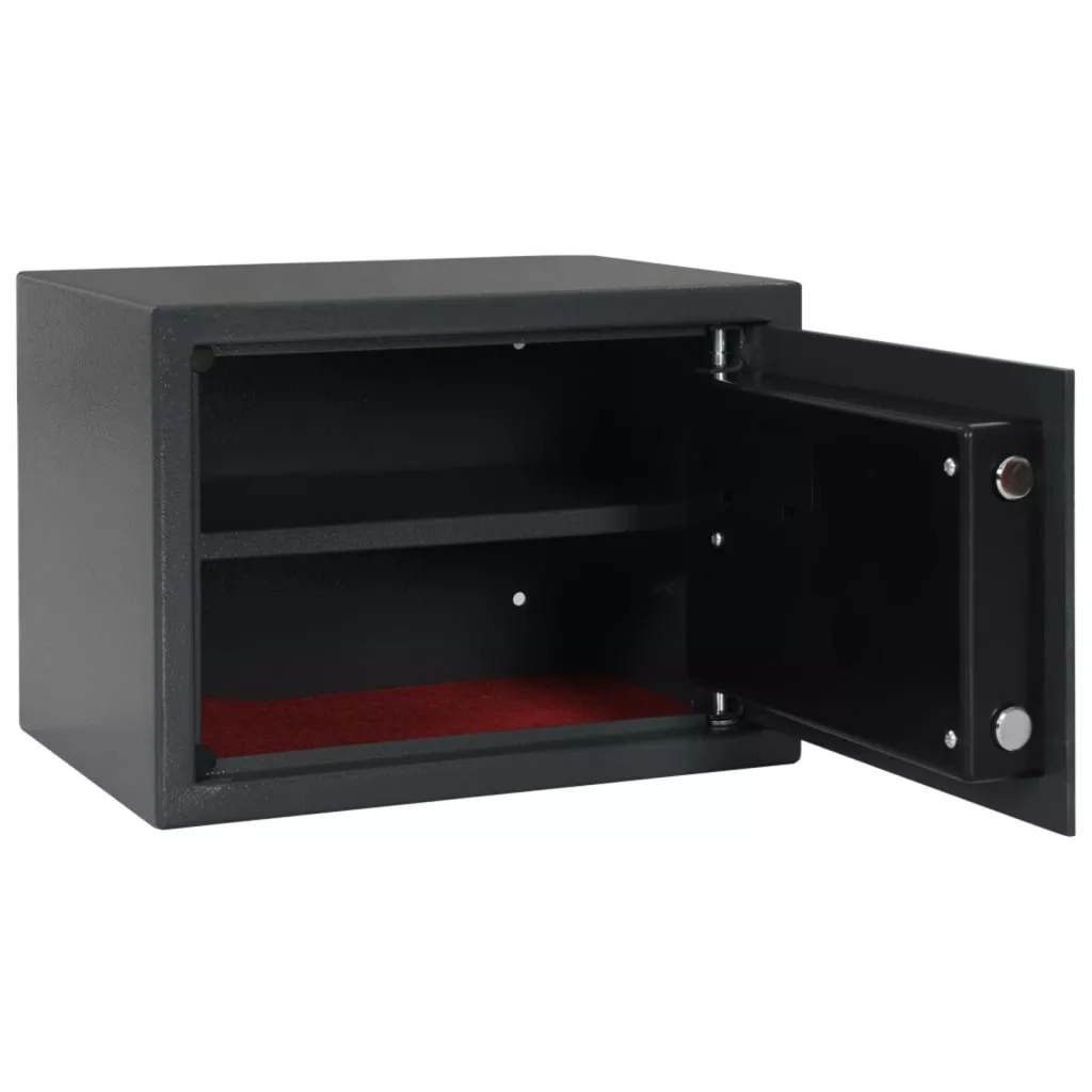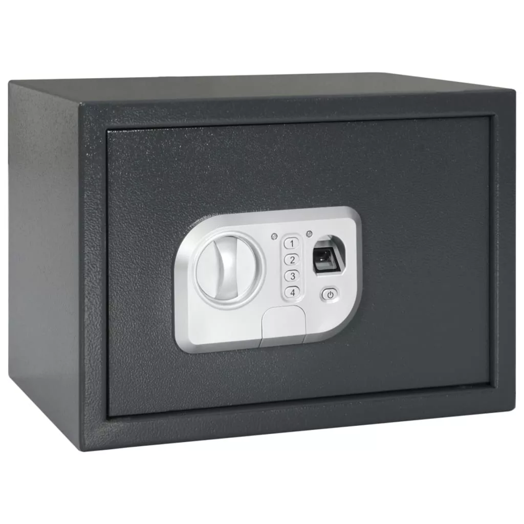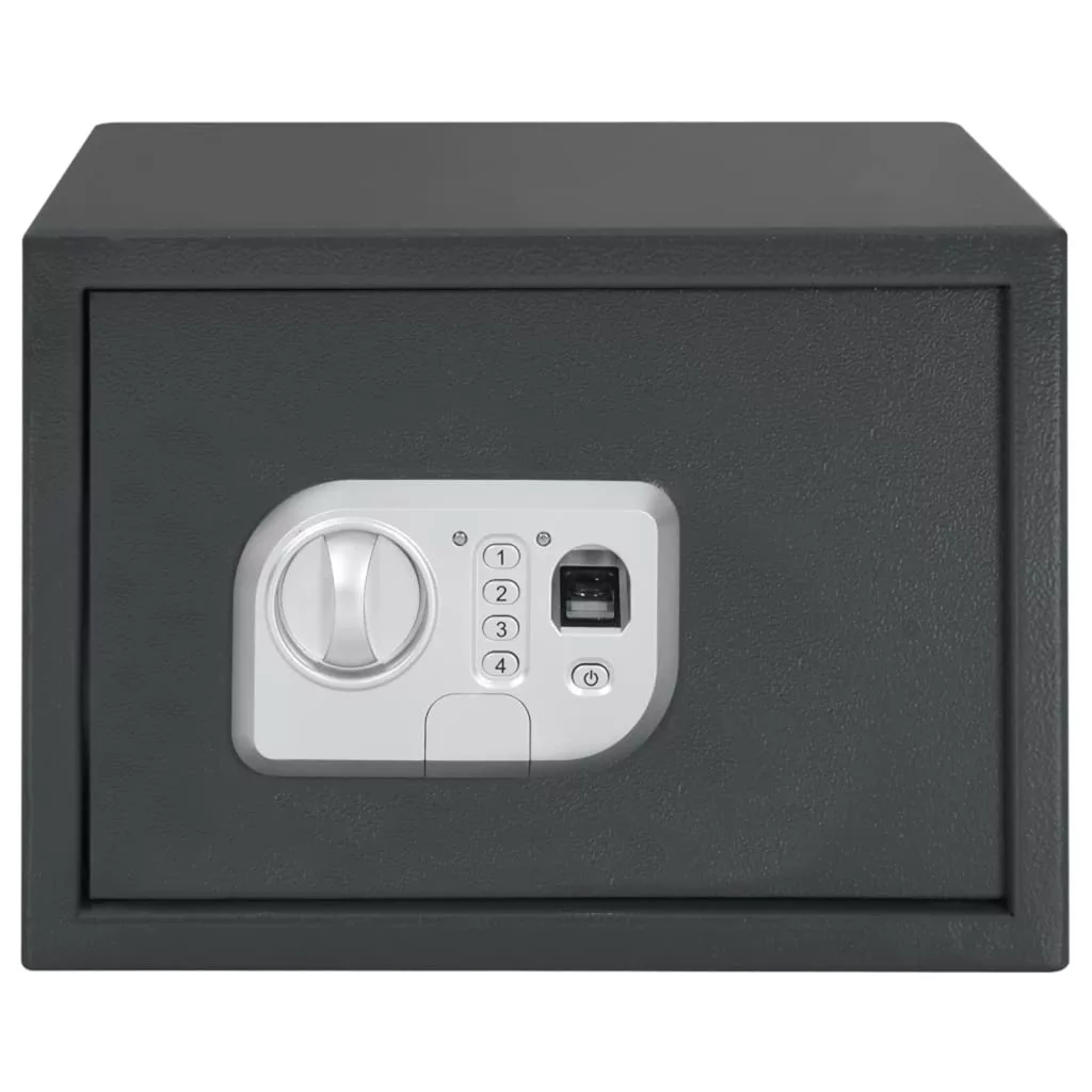 Ez az elektronikus digitális széf ütős védelmet nyújt az értékeidnek a clever ujjlenyomat zárjával és szilárd fém építésével. Otthoni és irodai használatra tervezve, a stílust kényelmes funkciókkal ötvözi, hogy a fontos dolgaid biztonságban legyenek, miközben jól is néz ki. Ujjlenyomat Zár: A fejlett ujjlenyomat rendszer gyors hozzáférést biztosít, elkerülve a kulcsokat, miközben megőrzi a dolgaid biztonságát. Élvezd a kulcs nélküli belépést, miközben könnyen eléred értékeidet, amikor csak szükséges. Tartós Anyag: Szilárd fém kivitelből készült, ez a széf az idő próbáját állja. Erős szerkezete hosszú távon megóvja fontos dolgaidat. Kulcsos Tartalék: Ez a széf egyedi kulcsgarnitúrával is rendelkezik, biztosítva, hogy mindig bejuss, amikor szükséged van rá, plusz nyugalmat adva. Kompakt és Stílusos: A 25 x 35 x 25 cm mérete jól illeszkedik különböző helyekre, beleértve az otthoni és irodai környezetet. Modern megjelenése és sötétszürke felülete simán illeszkedik a dekorációdhoz, miközben megőrzi a dolgaid biztonságát. Könnyű Telepítés: A telepítés gyerekjáték, minden szükséges hardver, mint például rögzítő csavarok és akkumulátorok mellett érkezik, így gyorsan üzembe helyezheted, hogy a figyelmed a dolgaid védelmére összpontosíthass. Ez a termék elemeket tartalmaz. Kérjük, olvassa el az utasítást az elemek eltávolításához. WEEE, akkumulátorok termékek potenciális hatással lehetnek a környezetre és az emberi egészségre a veszélyes anyagok jelenléte miatt. Kérjük, gondoskodjon arról, hogy az elektromos és elektronikus berendezések hulladékait/akkumulátorokat a helyi jogszabályoknak megfelelően újrahasznosítsa. Kérjük, látogasson el a vidaXL weboldalára, hogy megtalálja a helyi WEEE/akkumulátorok gyűjtési rendszerét. A termék csak a használati utasításban megadott akkumulátor-specifikációkkal használható.