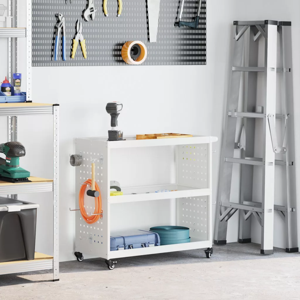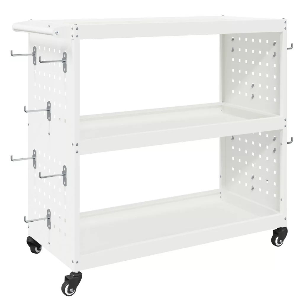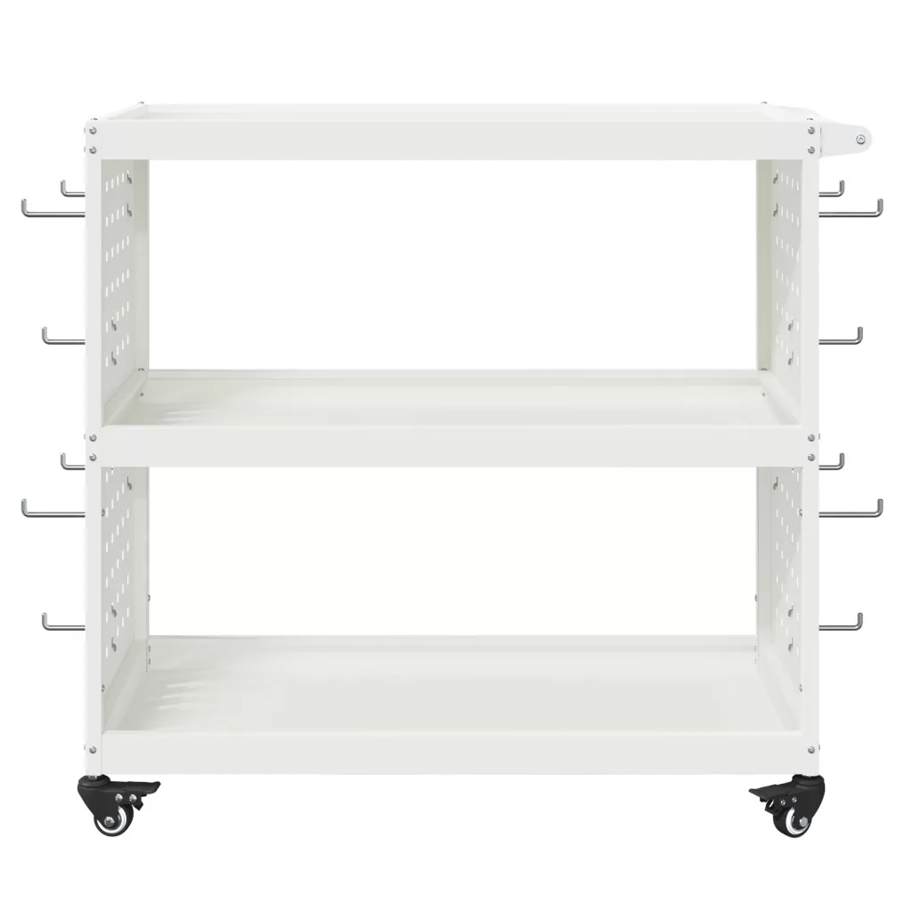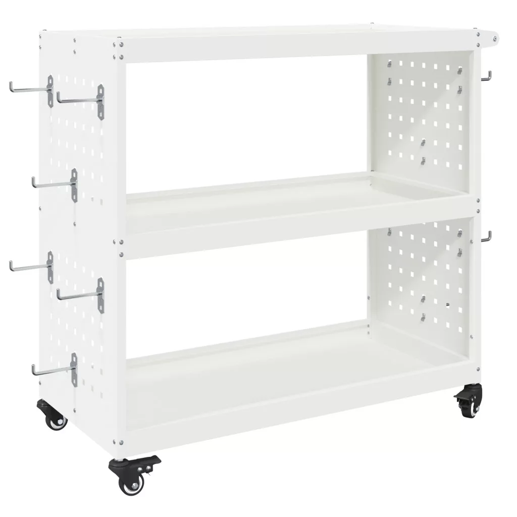 Eszköz Kocsi polcokkal kerékkel tárolóval Fehér 75 x 35 x 73 cm Porszórt Acél
