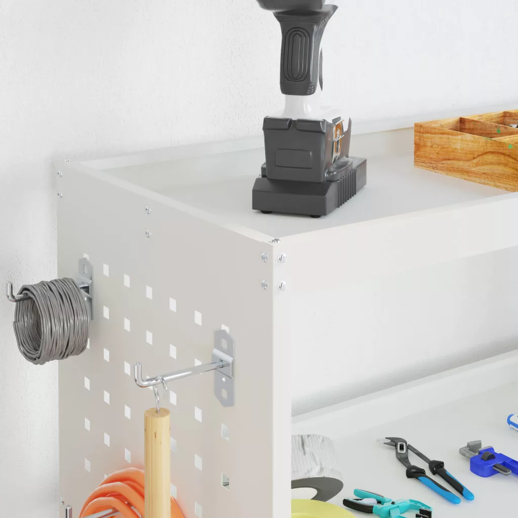 Ez a kemény eszköztároló kocsi tökéletesen illik bármilyen műhelybe vagy garázsba, és menő ipari stílusa mellett nagyon praktikus is. Rengeteg tárolóhelye van, a matt felülete pedig elegánssá varázsolja az acélt. Ha kereskedő vagy, vagy csak szeretsz DIY-zni, ez az organizáló segít, hogy okosabban tudj dolgozni, minden eszközöd kéznél és szépen elrendezve. Acél konstrukció: Hidegen húzott acélból készült, bírja a nehéz terheket, kiválóan tárolhatod benne az eszközeidet és felszereléseidet. A matt felület modern kinézetet ad, így mindenhol jól mutat. Masszív polcok: Szilárd fémpolcokkal, ez a kocsi rengeteget el bír tartani, a nagy teljesítményű eszközöktől a kisebb cuccokig. Az acél polcok tartósak, megőrzik formájukat még a legelfoglaltabb műhelyekben is. Zárható kerekek: A négy kerék 360°-ban pörög, így könnyen mozgathatod, két kerék zárható, hogy megakadályozza a kocsi elgurulását. Ez biztonságban és stabilan tart mindent munka közben. Testreszabható tárolás: 12 horgot tartalmaz, amivel úgy akaszthatod fel az eszközeidet, ahogy szeretnéd. Ez segít rendben tartani a munkaterületed, biztosítja, hogy minden kéznél legyen. Könnyű karbantartás: A kocsi karbantartása pofon egyszerű. Csak töröld le a fémpartokat nedves ruhával, és szárítsd meg. Kerüld a durva tisztítószereket, hogy a felület szép maradjon és sokáig bírja.