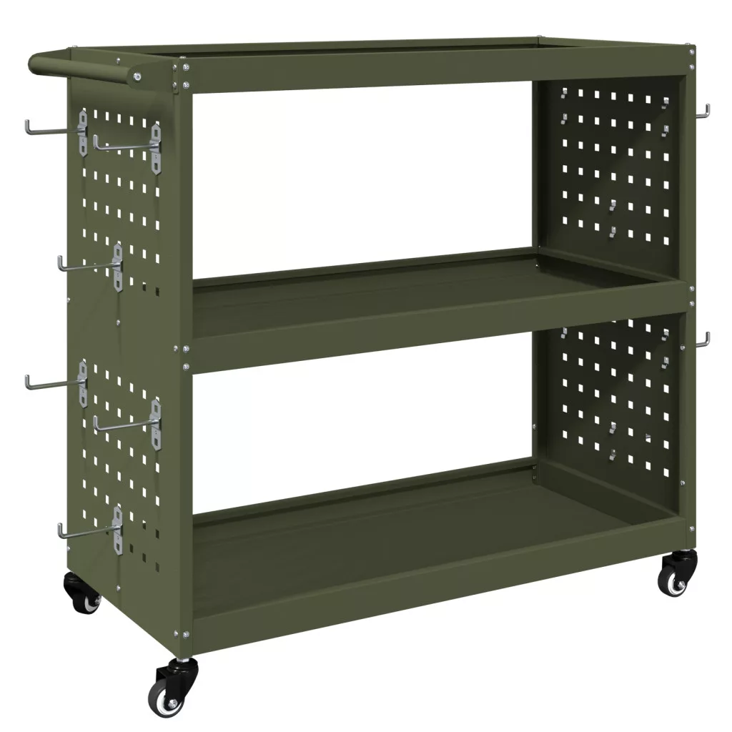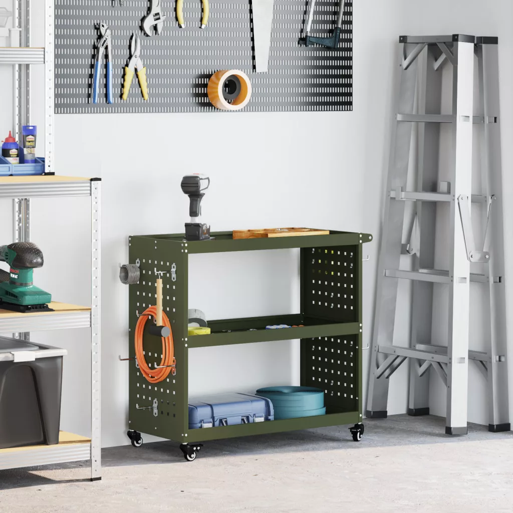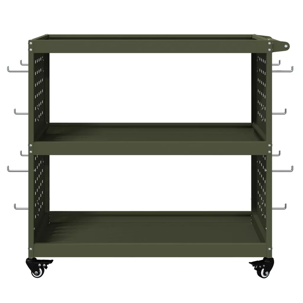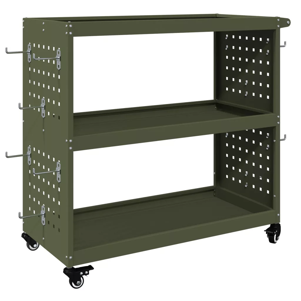 Eszköz Kocsi polcokkal kerékkel tárolóval Oliva zöld 75 x 35 x 73 cm Porszórt Acél