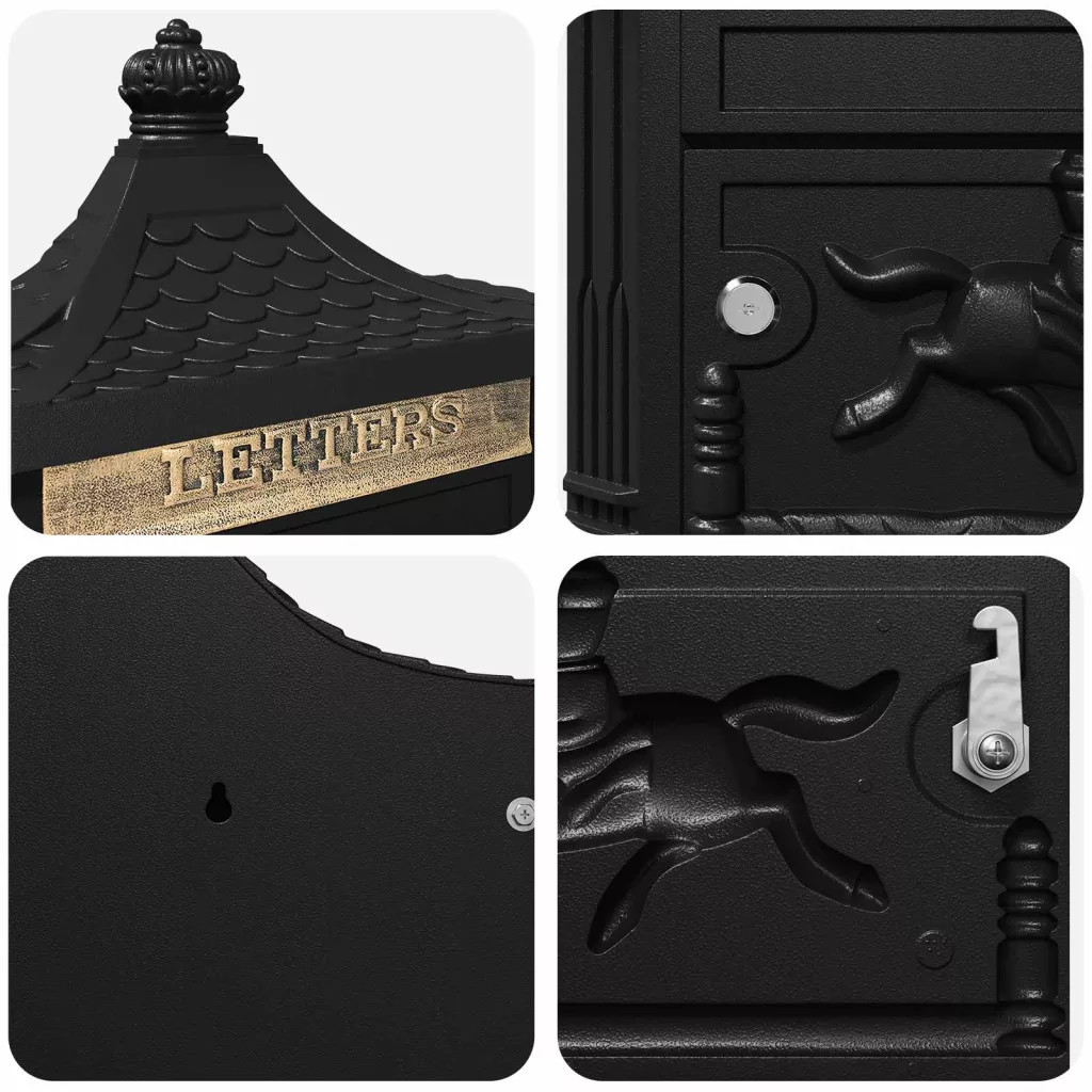 Ez a vintage falra szerelhető postaláda nemcsak dekoratív, hanem funkcionális kiegészítő is, ami időtlen bűbájt ad bármely kertnek vagy terasznak. A kültéri terek díszítésére lett tervezve, nosztalgikus stílusával biztonságos módot kínál a levelek és csomagok fogadására. Klasszikus vintage kinézete jól passzol a hagyományos és modern stílusokhoz, eleganciát és praktikusságot adva. A háztulajdonosok és vendégeik is értékelni fogják azt a különleges jelleget és hasznosságot, amit bármely bejárathoz ad. Öntött alumínium konstrukció A vintage postaláda prémium öntött alumíniumból készült, a tartósságra fókuszálva, időjárásállósága miatt ideal outdoor környezetekhez. Robusztus szerkezete biztosítja, hogy ellenáll a különféle időjárási körülményeknek, így a tulajdonosok megbízható szolgáltatást kapnak. Megbízható zárási funkció A zár mechanizmusa fokozott biztonságot kínál a leveleknek. A zárak forgó cam rendszert használnak, így könnyen, de biztonságosan hozzáférhető. Hatékonysága garantálja, hogy a levelek biztonságban maradnak, amíg el nem küldik, így védi a fontos küldeményeket. Vízálló kialakítás Kifejezetten kültéri használatra készült, a postaláda vízálló anyagokkal van ellátva, amelyek megvédik a leveleket. Ez a tulajdonság lényeges a tartalom épsége érdekében, védelmet nyújtva az esőtől és nedvességtől, így a levelek hosszabb ideig megőrzik épségüket. Vintage megjelenés Ez a postaláda vintage stílust tükröz, ami karaktert ad bármely kültéri helyszínnek. Klasszikus, nosztalgikus vibejével harmonizál a különböző építészeti stílusokkal, így fokozza a bejárat vagy a kert vizuális vonzerejét diszkrét eleganciával. Egyszerű karbantartás A karbantartása könnyű: csak nedves ronggyal kell letörölni. Ez az egyszerű rutin segít megőrizni a szépségét és funkcionalitását, több időt biztosítva, hogy élvezhesd a dekorációs értékét.