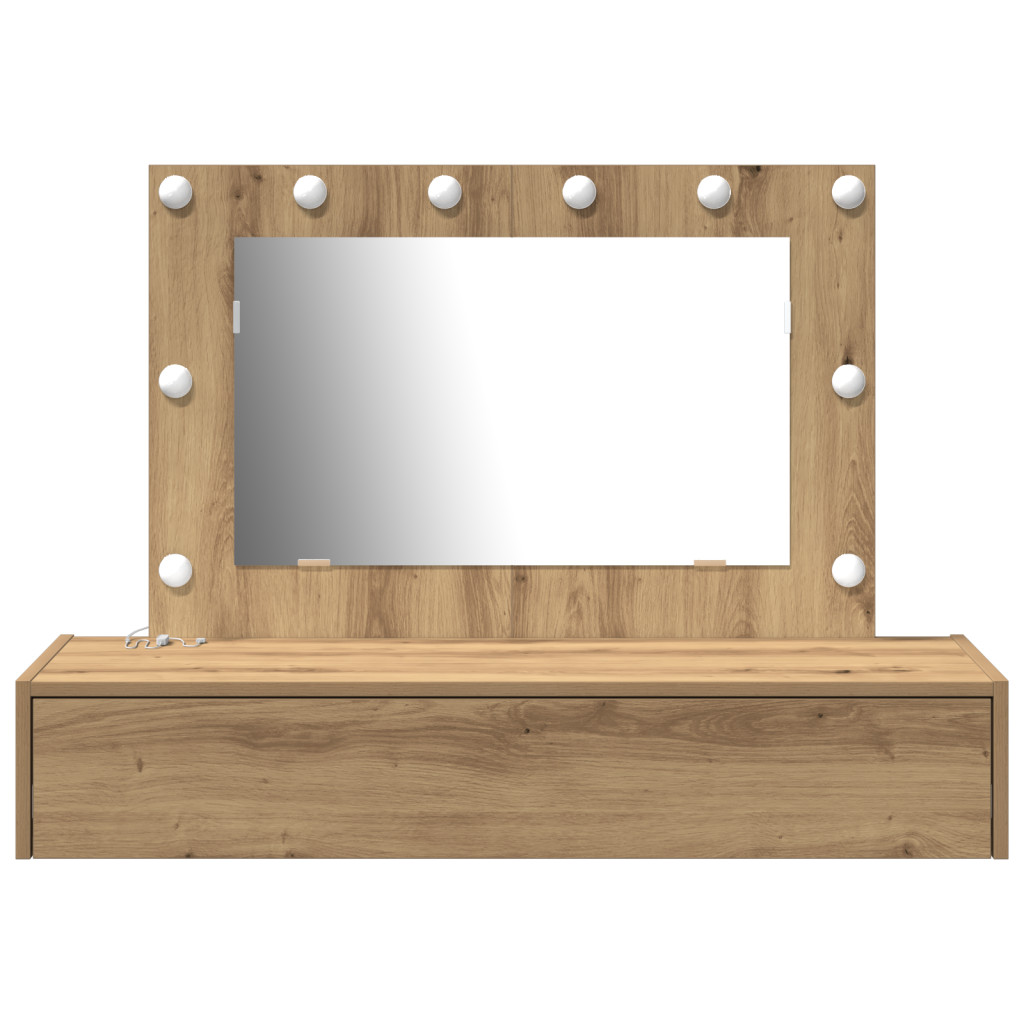 Fali öltöztetőasztal LED Fényekkel Kézműves Tölgy