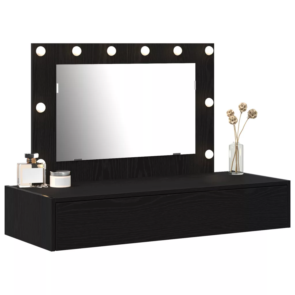 Fali pipereasztal LED lámpákkal fekete tölgy színben
