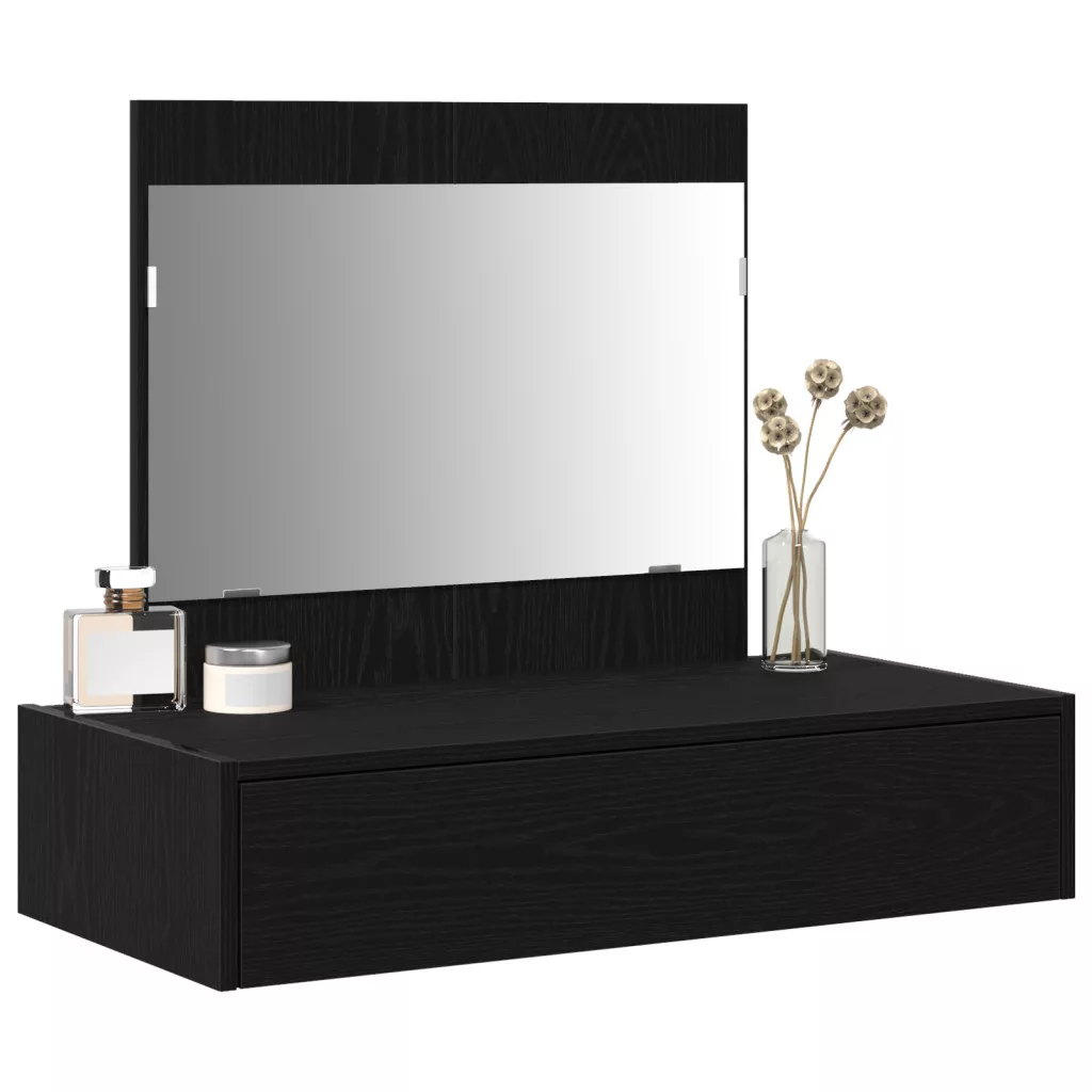 Ez a falra szerelhető sminkasztal a modern kinézet és a praktikusság tökéletes kombinációja, ezért nagyszerű választás bármely hálószobába vagy ápolási helyre. A sima fekete tölgy dizájnja és elegáns stílusa nemcsak jól néz ki, hanem nagyon hasznos is a grooming igényeidhez. A falra szerelhető dizájn maximálisan kihasználja a padlót, így praktikus megoldás a szükséges kellékeidhez. Ez a tágas fiók jó tárolási lehetőséget biztosít a kozmetikáid és kiegészítőid számára, így a tered mindig rendezett marad. A mellékelt lapos tükör fokozza az ápolási élményt, fényt visszaverve barátságos és világos hangulatot teremt. Egy prémium minőségű, szerelt fából készült sminkasztal, amely a tartósság jegyében készült, így évekig megőrzi a megjelenését. A méretei: 83 cm hosszú, 40 cm széles és 70 cm magas, ami remek egyensúlyt teremt a helymegtakarítás és a használhatóság között – ideális különféle szobák számára.