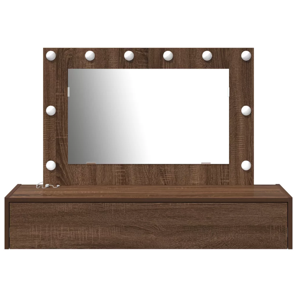 Falra Akasztható Öltöztető Asztal LED Fényekkel Barna Tölgy
