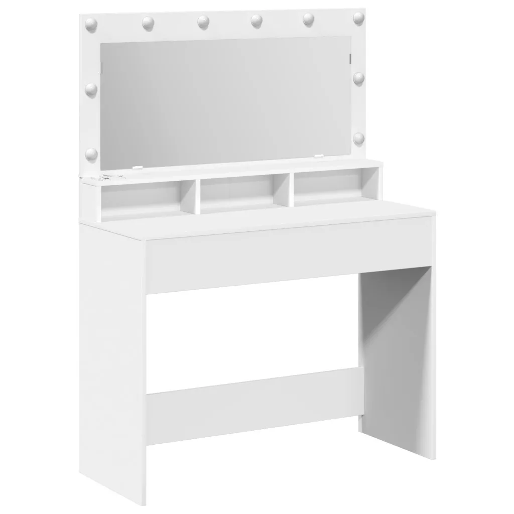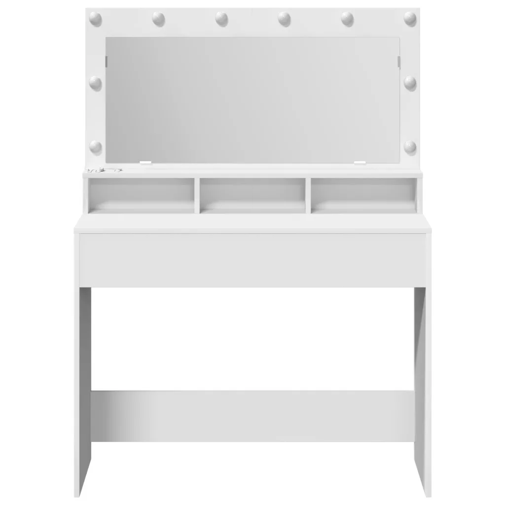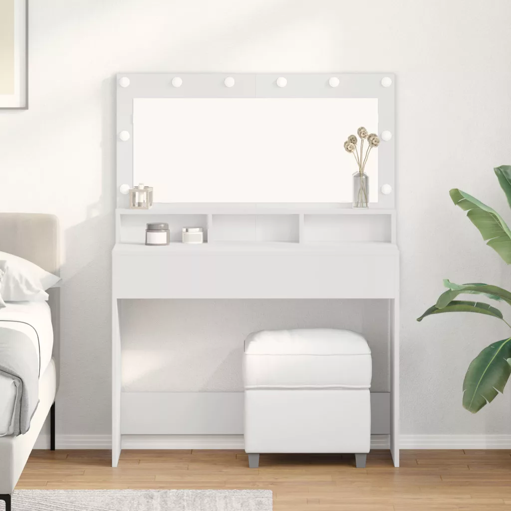 A Modern Fehér Sminkasztal a stílus és a praktikum mixe, ami lehetővé teszi, hogy szuper teret teremts a sminkedhez és az ápolásodhoz. Tiszta vonalak és stílusos matt felület modern vibe-ot ad bármilyen hálószobai dekorhoz, inspirálva, hogy minden nap élvezhesd a szépségápolási rutinjaidat. Okos világítás: Az beépített LED világítás megvilágítja az arcod, biztosítva, hogy bárhol, bármikor tökéletes legyen a sminked, egy kis csillogást adva a szépségélményedhez. Generózus tárolás: Három beépített polccal ez a sminkasztal rengeteg helyet kínál a kozmetikumok, eszközök és kiegészítők rendezésére, így mindent rendben tarthatsz és könnyen elérhetsz a zsúfolt reggelek során. Rugalmas dizájn: Modern megjelenése minden szobastílushoz illik, így rugalmas kiegészítő akár minimalista, akár klasszikus hangulatra is. Minőségi anyag: MDF-ből készült, ez a sminkasztal az tartósságra lett tervezve, biztosítva egy szilárd, ugyanakkor stílusos felületet minden napi ápolási igényedhez. Kényelmes méretek: 100 x 41 x 135 cm-es méreteivel szépen illik a személyes terekbe, megfelelő egyensúlyt teremtve a funkció és az elegancia között anélkül, hogy túl domináló lenne a szobában. Kérjük, vegye figyelembe, hogy csak tanúsított DC 5V bemenetet használjon. A magasabb feszültség túlmelegedést okozhat, és károsíthatja a készüléket, valamint túlhevülés és tűz kockázatát jelentheti. Ne csatlakoztassa ezt a terméket semmilyen más tápegységhez, mint amit a kézikönyvben, a névtáblán vagy a vidaXL kifejezetten ajánlott. Ezt a készüléket nem használhatják 14 évesnél fiatalabb gyermekek, valamint csökkent fizikai, érzékszervi vagy mentális képességekkel rendelkező személyek, vagy elektronikai eszközök használatában tapasztalatlan vagy tudás nélküli személyek. Az elektromosság veszélyes. A nem megfelelő telepítés, használat vagy módosítás (egyedi alkatrészek cseréje) a készülék károsodásához vezethet, áramütést és veszélyt okozva a felhasználónak. Ne működtesse ezt a terméket robbanásveszélyes atmoszférában, például gyúlékony folyadékok, gázok és por jelenlétében, vagy 50 Celsius foknál magasabb hőmérsékleten. Ne kapcsolja be a terméket, ha a csatlakozó kábel vagy tápegység láthatóan sérült. Ha a lámpa külső hajlékony kábele vagy vezetékje sérült, azt kizárólag a gyártó vagy annak szervizügynöke, illetve hasonló képesítéssel rendelkező személy cserélheti ki, hogy elkerülje a veszélyt. A telepítés és karbantartás alatt kapcsolja ki az áramot. Győződjön meg arról, hogy a fényforrások lehűltek. Ennek a lámpatestnek a fényforrása nem cserélhető; ha a fényforrás elérte élettartamának végét, az egész lámpát ki kell cserélni. Csak belső használatra, ne használja kültéren.