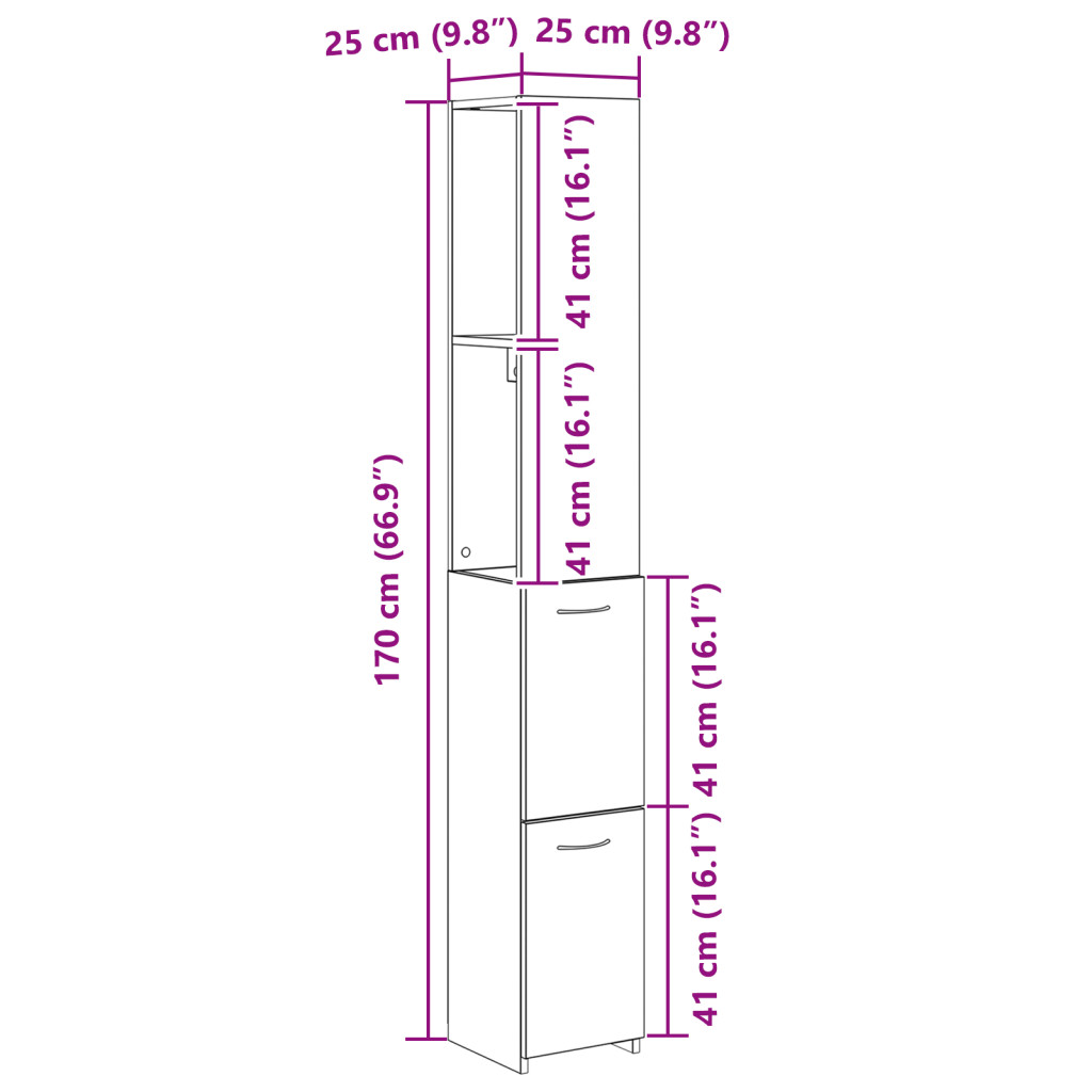 Fekete Tölgy Fürdőszobai Szekrény 25x25x170 cm Mérnöki Fa
