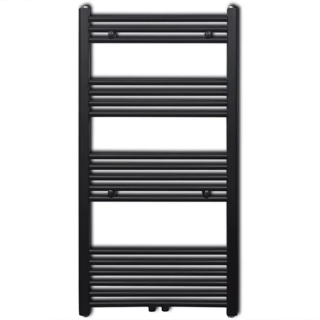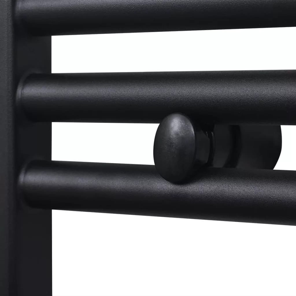 Fekete fürdőszobai egyenes törölközőtartó központi fűtéssel 600x1160mm