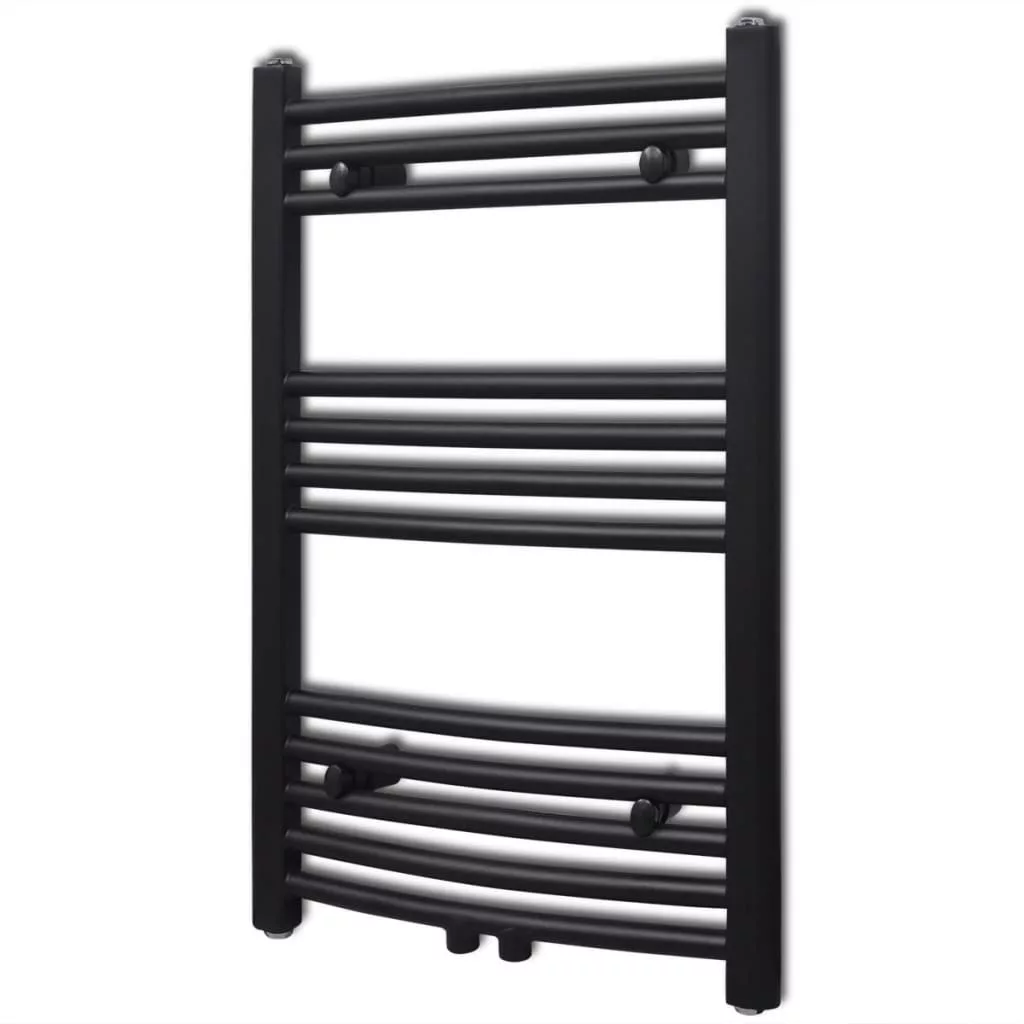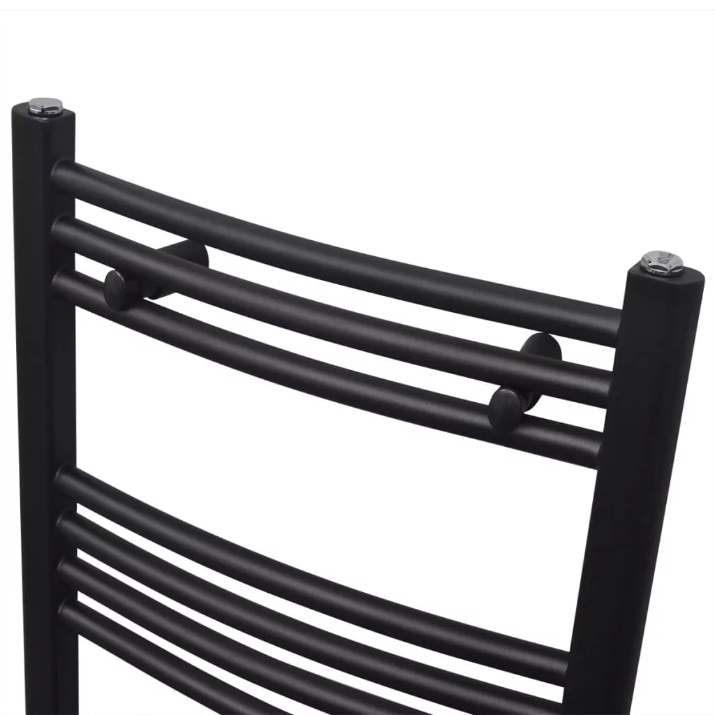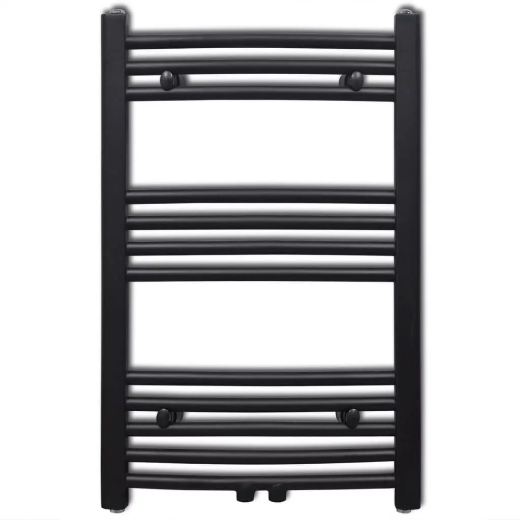 Fekete fürdőszobai íves törölközőtartó központi fűtéssel 500x764 mm