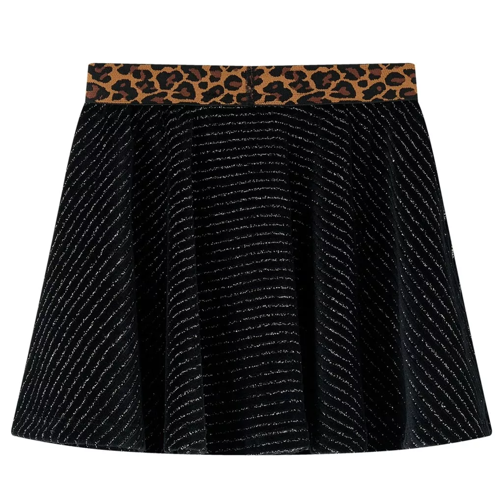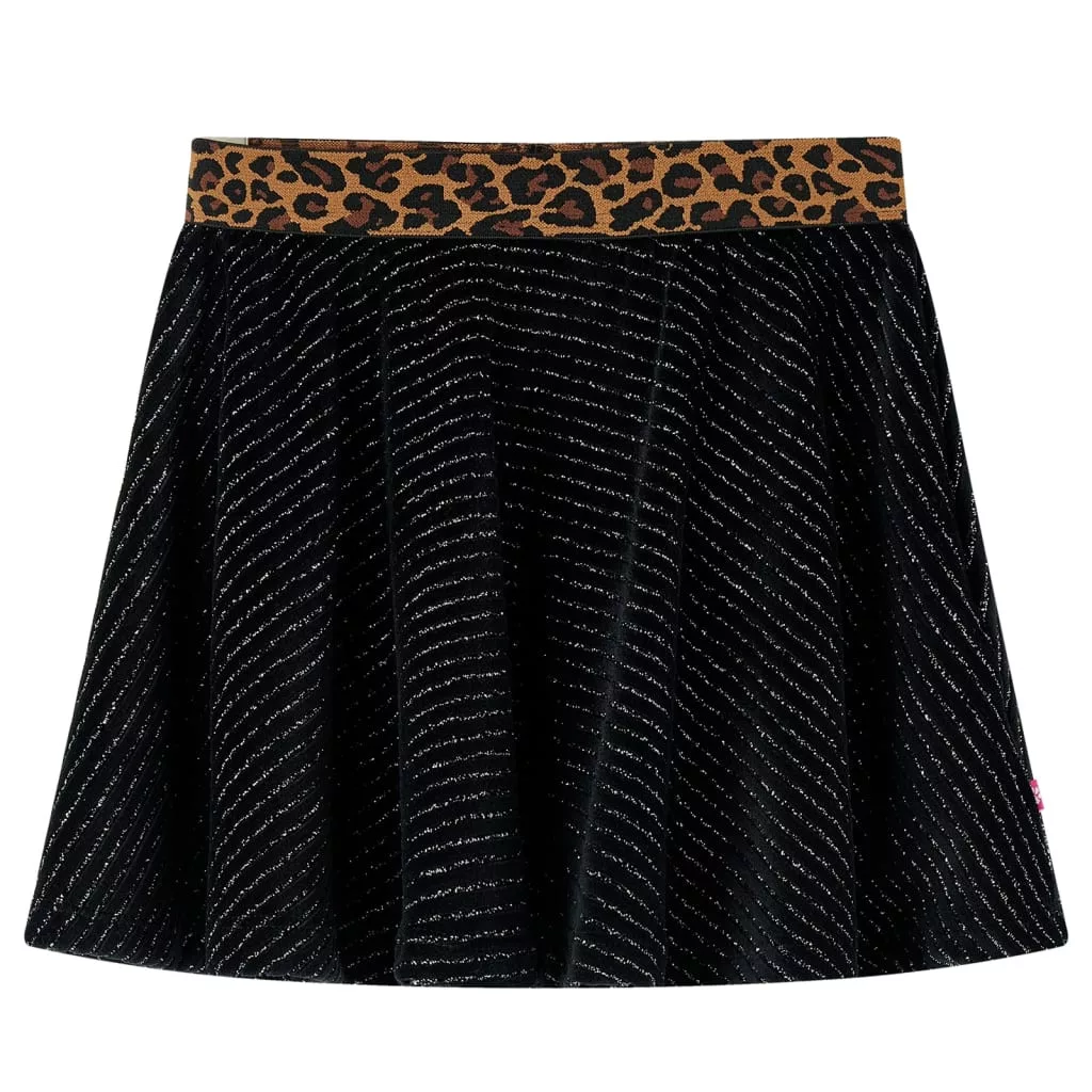 Fekete gyerekszoknya leopárdmintás derékpánttal 128