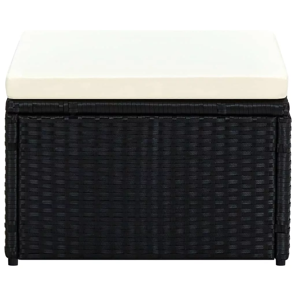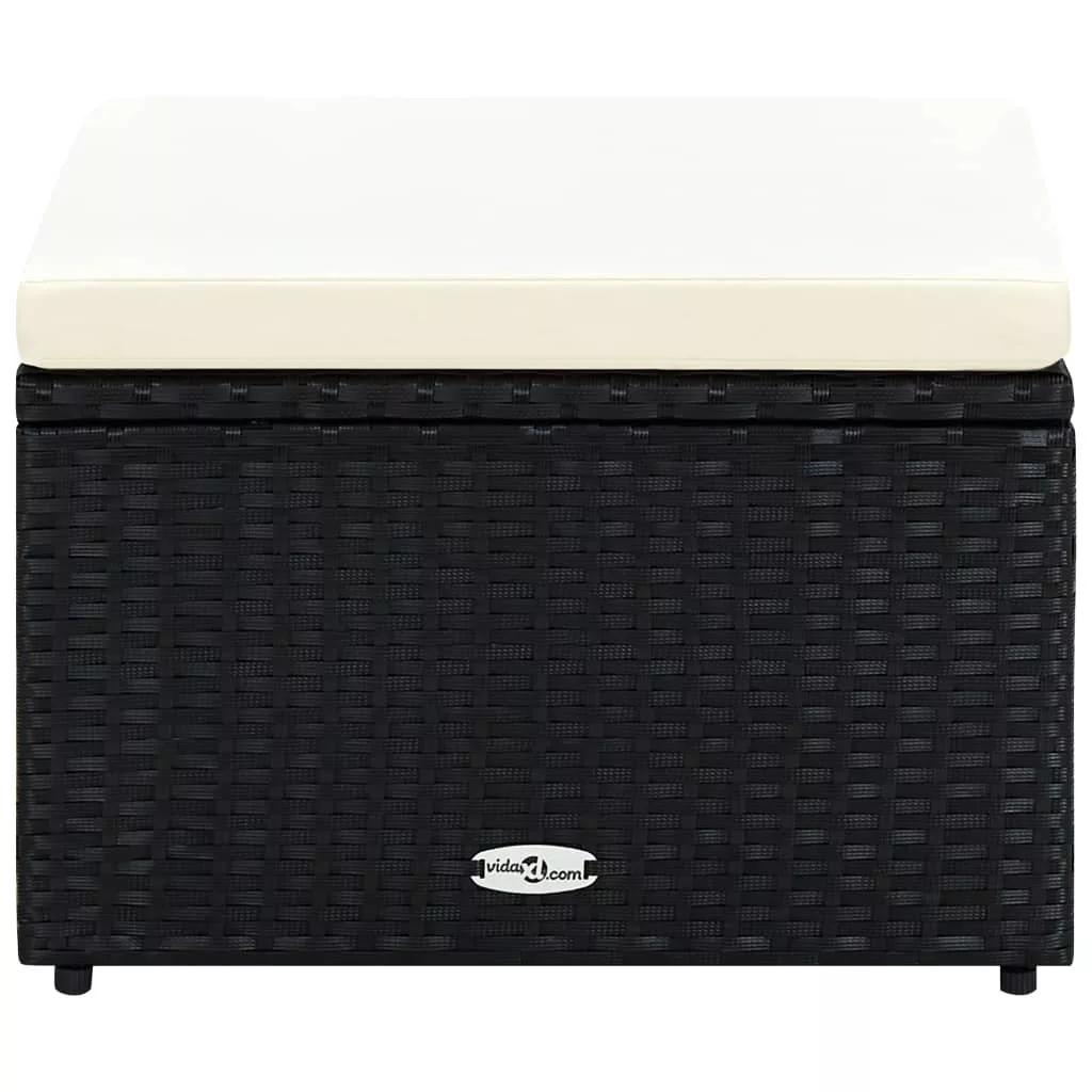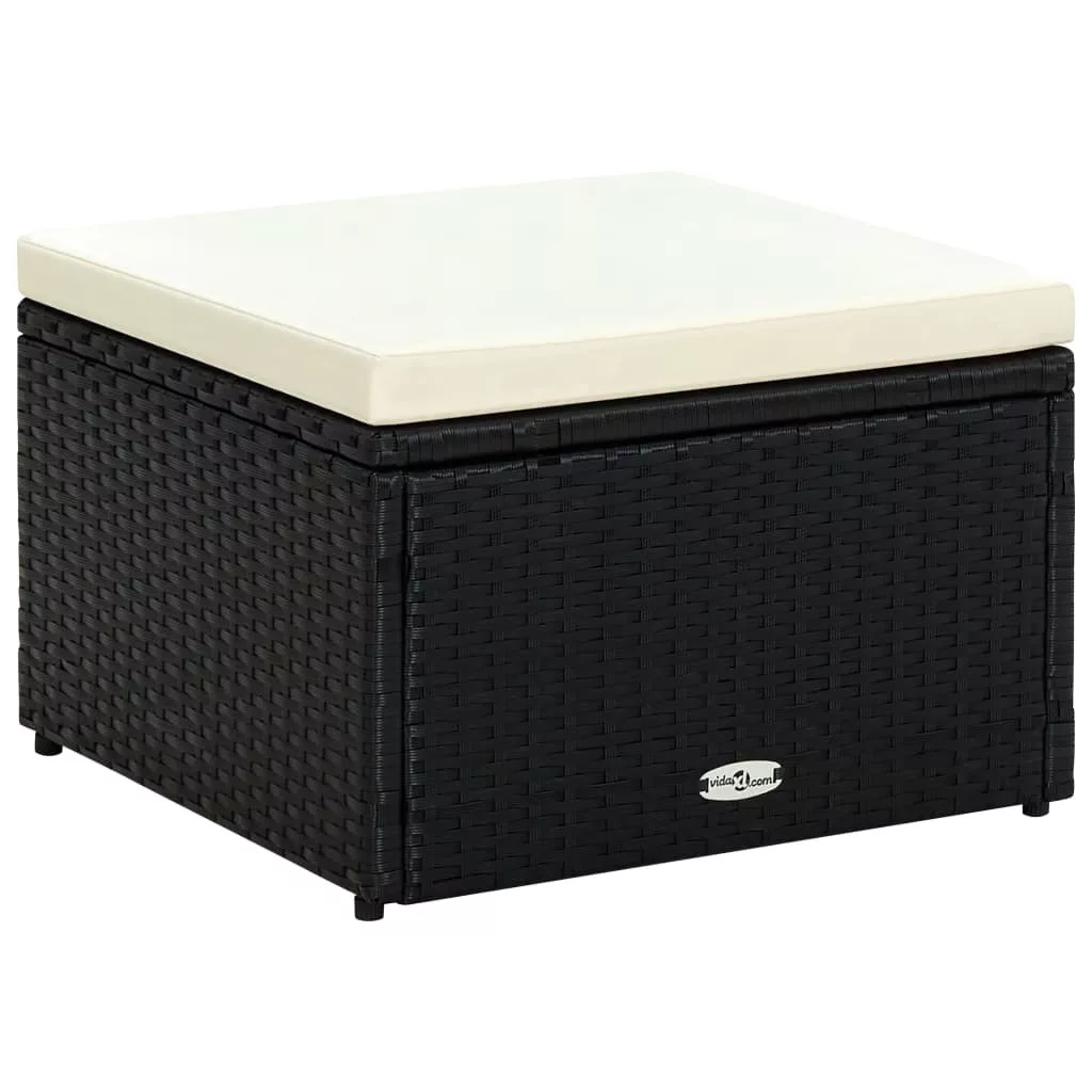 Fekete polyrattan ottomán zsámoly 53x53x30