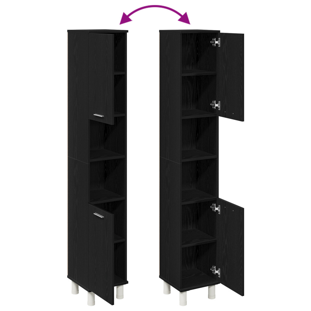 Fekete tölgy fürdőszoba szekrény 30x30x179 cm mérnöki fából
