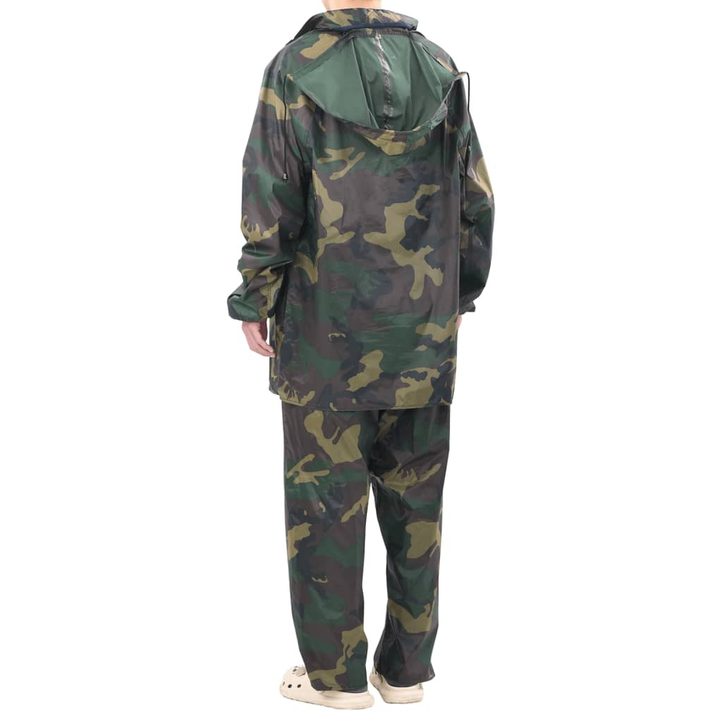 Férfi Terepszín Mintás 2-Darab Eső Ruha Kapucnis XL