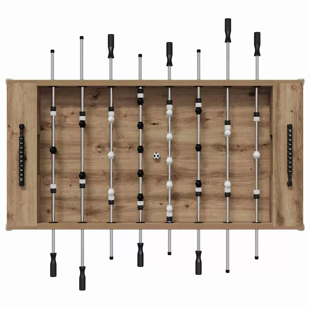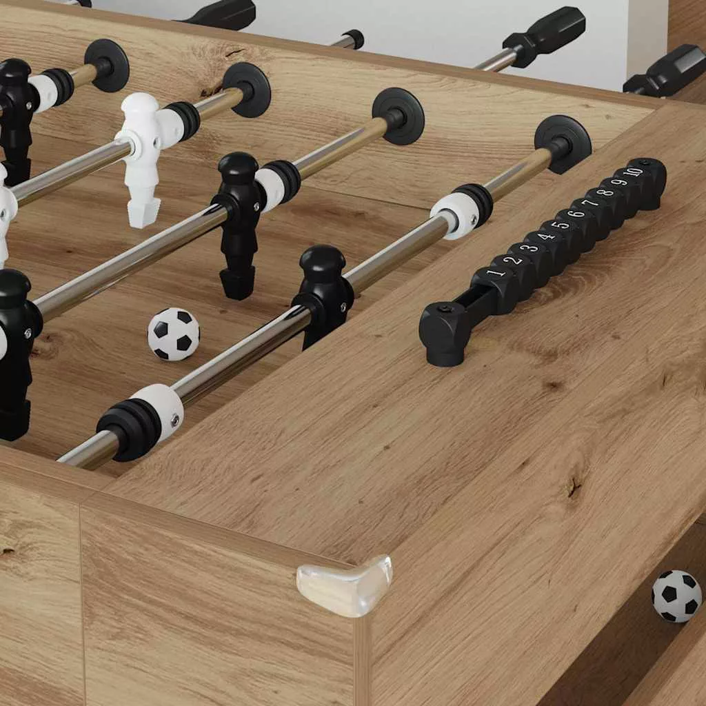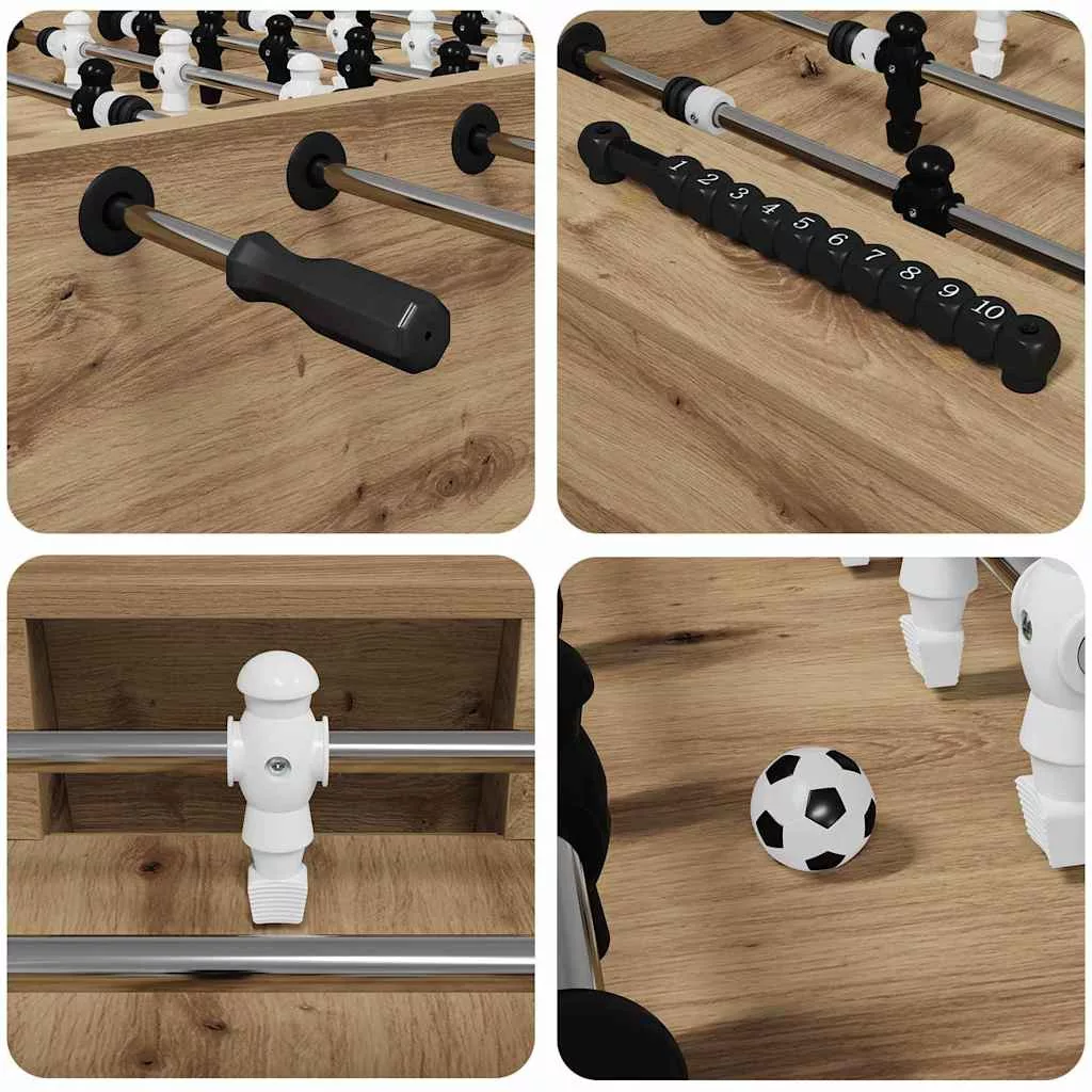 A Mérnöki Fa Fussball Asztal pont neked való, ha szereted a stílust és a játékélményt. Modern dizájnjával, letisztult vonalaival és praktikus megoldásaival elegáns kiegészítője lesz bármelyik játékteremnek, végtelen szórakozást biztosít családoknak és barátoknak. A matt felülete és ergonomikus fogantyúi miatt az asztal domináló kinézetet adott, miközben a legjobb markolati kontrollt biztosítja, így garantálva a kellemes élményt minden szinten játszó számára. Ideális beltéri használatra, ez az asztal igazán robusztus középpontja lesz a baráti versenyeknek. Tartós Mérnöki Fa: Ez a fussball asztal kopásálló mérnöki fából készült, amiről tudni lehet, hogy megbízható és masszív. Az anyaga biztosítja, hogy az asztal bírja a versenyszintű játékokat, és megőrzi az időtálló szerkezetét. Tökéletes választás azoknak, akik minőséget és tartósságot keresnek a játéktermük legfontosabb darabjában. Ergonomikus Fogantyú Tervezés: Kifejezetten ergonomikus fogantyúkkal van felszerelve, hogy a játékosoknak kényelmes, csúszásmentes fogást biztosítson. Ez a dizájn lehetővé teszi a precíz irányítást az üreges acélrudakon, így még intenzívebb mérkőzéseken is könnyedén tudják követni a játék tempóját. Modern, Minimalista Tervezés: Az asztal modern kinézettel és tiszta vonalakkal rendelkezik. A stílus tökéletesen illik bármely korszerű játékterem díszítéséhez, eleganciát kölcsönözve neki. Ez a dizájn minimális díszítést alkalmaz, a játékra és a funkcióra helyezve a hangsúlyt. Tökéletes Kontroll Üreges Acélrudakkal: Az üreges acélrudak használata kiváló irányítást ad a játék során. A játékosok gyorsan és hatékonyan mozgathatják a figuráikat, ami igazán dinamikus és izgalmas játékélményt biztosít. Egyszerű Karbantartás: A karbantartás pofonegyszerű, elég, ha egy száraz ronggyal letörlöd, hogy az asztal a legjobb formáját hozza. Ez a könnyű karbantartási rendszer biztosítja, hogy az asztal mindig a játéknak legyen a főszereplője.