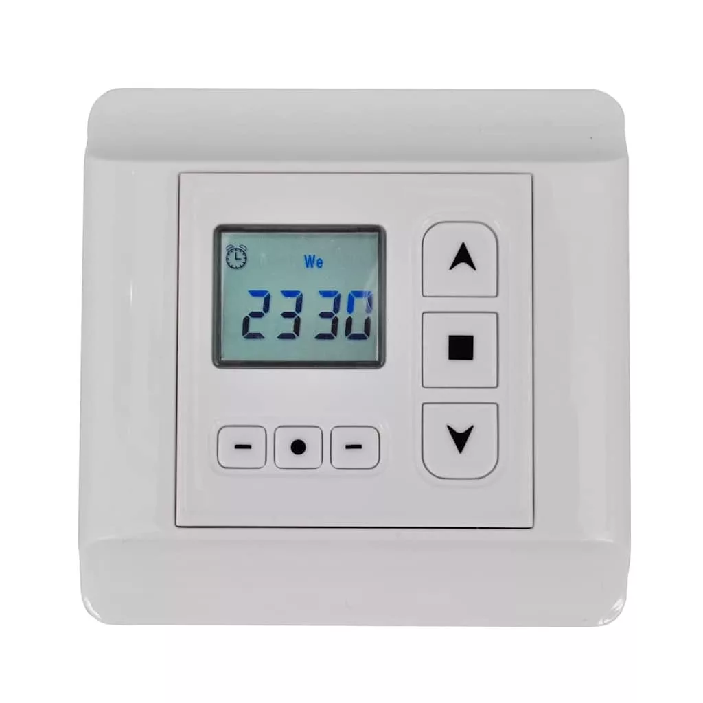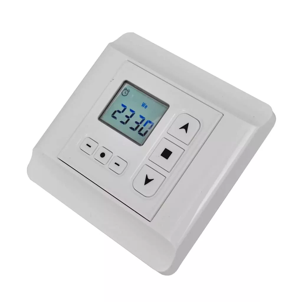 Forgómotor-vezérlőnk segítségével a védőtetők, napellenzők és redőnyök vezérlése gyerekjáték lesz! Ez a vezérlő 1 forgómotort képes vezérelni, és 24 órás / 7 napos időzítőfunkcióval rendelkezik. Az ütemterv egy hétre vagy egy adott napra is könnyedén beállítható. 6 könnyen használható gombbal és nagyméretű egyszínű kijelzővel rendelkezik. A beépített tápegység bemeneti feszültsége 230 V. A vezérlő bármilyen szokványos csőmotorhoz használható, melyek két vezérlővezetékkel (fel / le), fázisvezetékkel és semleges vezetékekkel van ellátva.. Figyelmeztetések Ne nyelje le az elemet; kémiai égés veszélye áll fenn. Ez a termék gombelemet tartalmaz. A gombelem lenyelése súlyos belső égési sérüléseket okozhat és csupán 2 óra alatt halálhoz vezethet. Az új és használt elemeket tartsa távol a gyermekektől. Ha az elemtartó nem zár rendesen, ne használja tovább a terméket és tartsa távol gyermekektől. Ha úgy véli, lenyelhették az elemet, vagy bármilyen testrészbe bejutott, azonnal forduljon orvoshoz. Ezt a készüléket nem használhatják csökkent fizikai, érzékszervi vagy szellemi képességű, illetve tapasztalattal és tudással nem rendelkező személyek (beleértve a gyermekeket is), kivéve, ha a biztonságukért felelős személy felügyeli őket, vagy utasításokat kaptak a készülék használatára vonatkozóan. Ez a termék nem játék. Ne engedje, hogy gyerekek játsszanak a készülékkel.