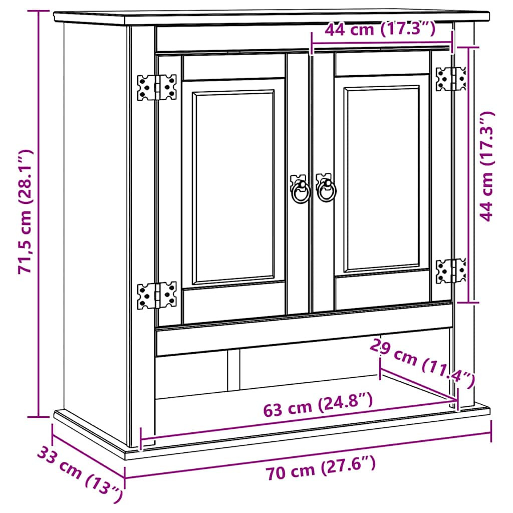 Függő szekrény Corona Fehér 70 x 33 x 71,5 cm Tömör fenyőfa
