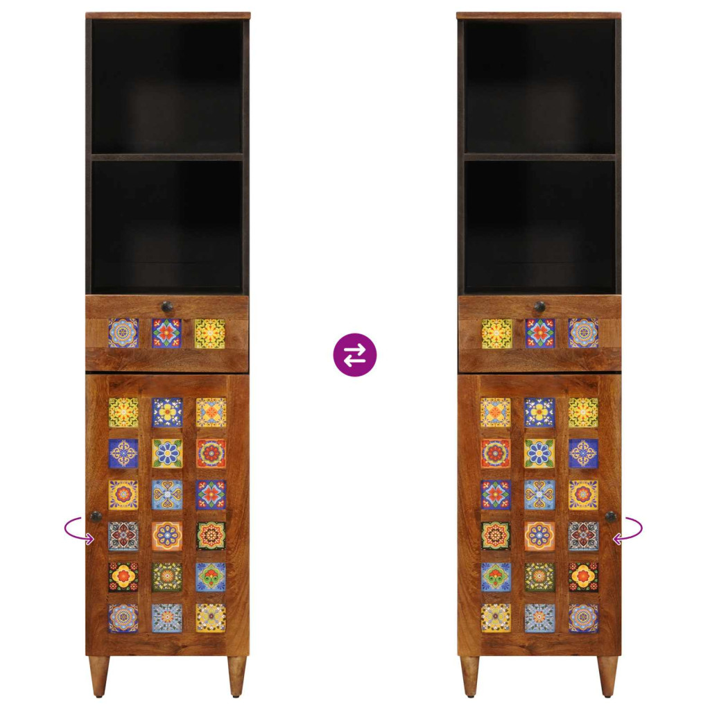 Ez a Modern fürdőszobaszekrény a funkció és a stílus tökéletes keveréke, amitől igazán kiemelkedő darab bármilyen fürdőszobában. Letisztult, téglalap alakú forma és tömör mangófa anyag jellemzi, fémlábakkal, ami a kortárs dizájn magját tükrözi. Tökéletesen passzol modern otthonokhoz, esztétikus tárolási megoldást nyújtva anélkül, hogy elveszítené az egyszerűségét vagy eleganciáját. Magas, impozáns megjelenése építészeti pluszt ad bármely fürdőszobához. Stílusos dizájn: Ez a fürdőszobaszekrény elegáns téglalap formájával a modern stílust tükrözi. Tömör mangófából készült, meleg barna felületével, ami szuper kinézetet kölcsönöz, és jól megy a különböző fürdőszobai belső terekhez, miközben bőséges tárolóhelyet biztosít. Magas minőségű anyagok: Tömör mangófából készült, ami híres tartósságáról és szép textúrájáról. A szekrény teste hosszú élettartamot ígér, a masszív fémlábak pedig megbízható támaszt adnak, ötvözve az esztétikát a robusztus felépítéssel. Funkcionális tárolás: A szekrény belsejében tágas rekeszek vannak, amik praktikussá teszik a piperecikkek, törölközők és egyéb alapfelszerelések tárolását. Sok helyet ad, hogy a fürdőszobád tiszta és rendezett legyen, így minden szükséges dolgot könnyen elérhetsz. Könnyű karbantartás: Védő bevonatának köszönhetően könnyen tisztítható. Csak töröld le egy nedves ruhával, hogy sokáig megőrizd a szépségét, anélkül, hogy sok időt elvenne a karbantartás. Biztonságos használat: A biztonság miatt a szekrény falra rögzíthető, így elkerülhetők a balesetek, biztosítva ezzel a stabilitást. Ez a funkció fontos a biztonság növelésére és a nyugalom érdekében bármilyen otthoni környezetben.