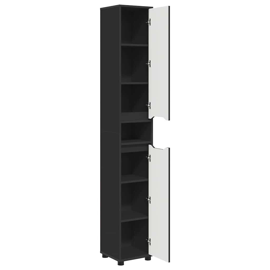 Fürdőszoba Székény polcokkal Fekete 30,5 x 30 x 195 cm Faanyag